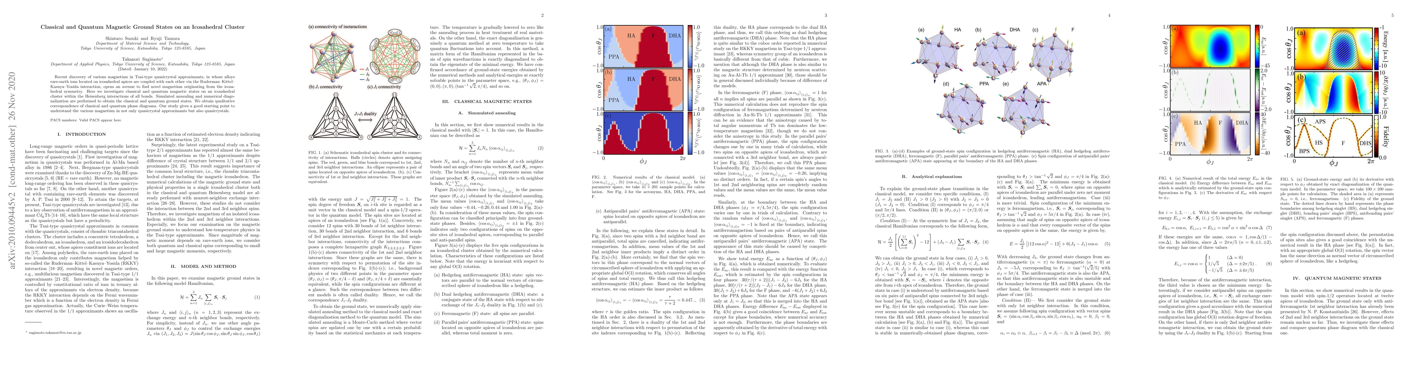 Researchers investigated magnetic states on an icosahedral cluster using Heisenberg interactions, finding a qualitative correspondence between classical and quantum phase diagrams that could help understand novel magnetism in quasicrystalline materials.