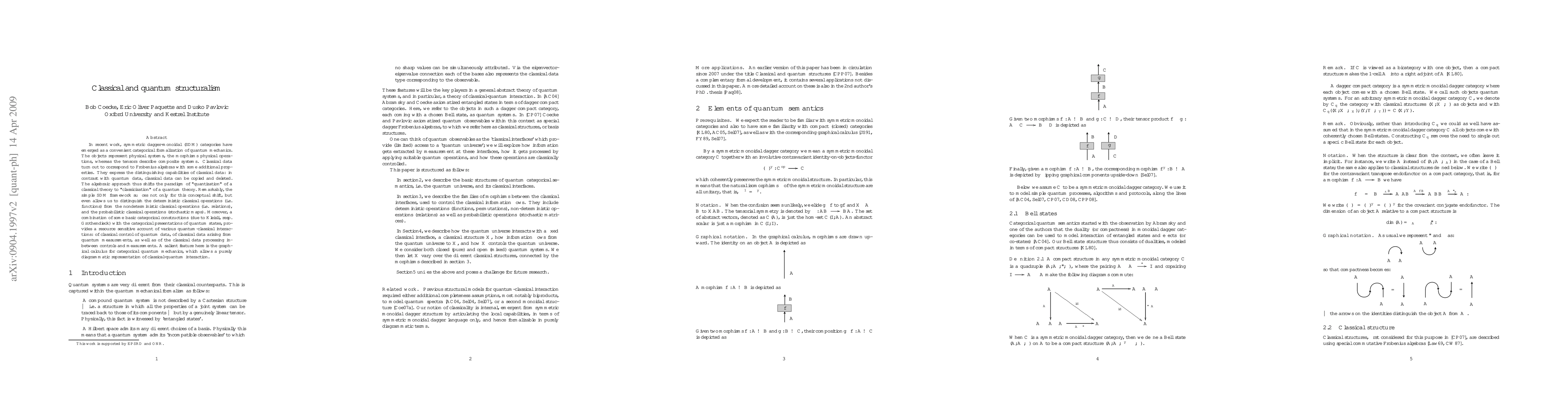 In recent work, symmetric dagger-monoidal (SDM) categories have emerged as a convenient categorical formalization of quantum mechanics. The objects represent physical systems, the morphisms physical operations, whereas the tensors describe composite systems. Classical data turn out to correspond to Frobenius algebras with some additional properties. They express the distinguishing capabilities of classical data: in contrast with quantum data, classical data can be copied and deleted. The algebraic approach thus shifts the paradigm of "quantization" of a classical theory to "classicization" of a quantum theory. Remarkably, the simple SDM framework suffices not only for this conceptual shift, but even allows us to distinguish the deterministic classical operations (i.e. functions) from the nondeterministic classical operations (i.e. relations), and the probabilistic classical operations (stochastic maps). Moreover, a combination of some basic categorical constructions (due to Kleisli, resp. Grothendieck) with the categorical presentations of quantum states, provides a resource sensitive account of various quantum-classical interactions: of classical control of quantum data, of classical data arising from quantum measurements, as well as of the classical data processing in-between controls and measurements. A salient feature here is the graphical calculus for categorical quantum mechanics, which allows a purely diagrammatic representation of classical-quantum interaction.