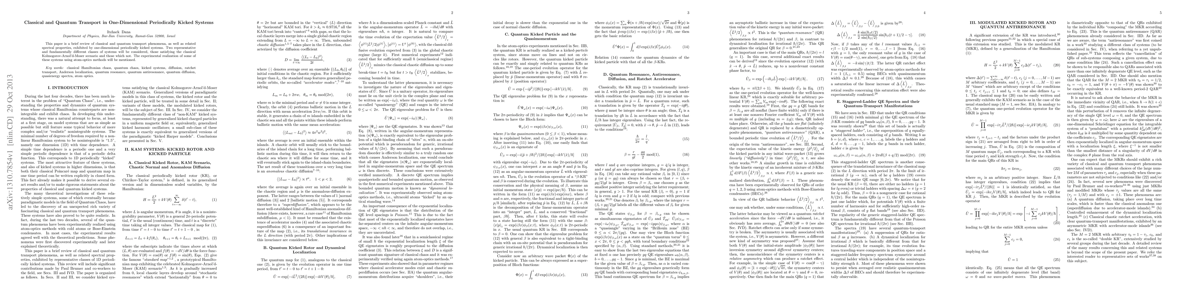 This paper reviews transport phenomena in one-dimensional periodically kicked systems, exploring classical and quantum behaviors, and implications for experimental realization using atom-optics methods.