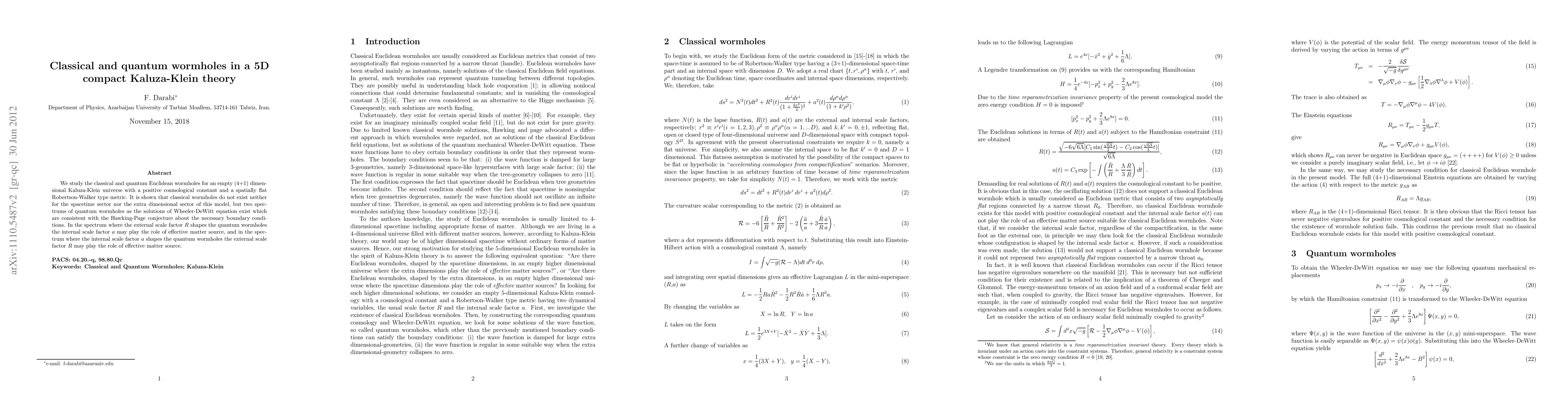 This paper investigates classical and quantum Euclidean wormholes in a 5D Kaluza-Klein theory with a positive cosmological constant. It finds no classical wormholes but identifies two quantum wormhole spectra consistent with the Hawking-Page conjecture, where either the external or internal scale factors act as effective matter sources.