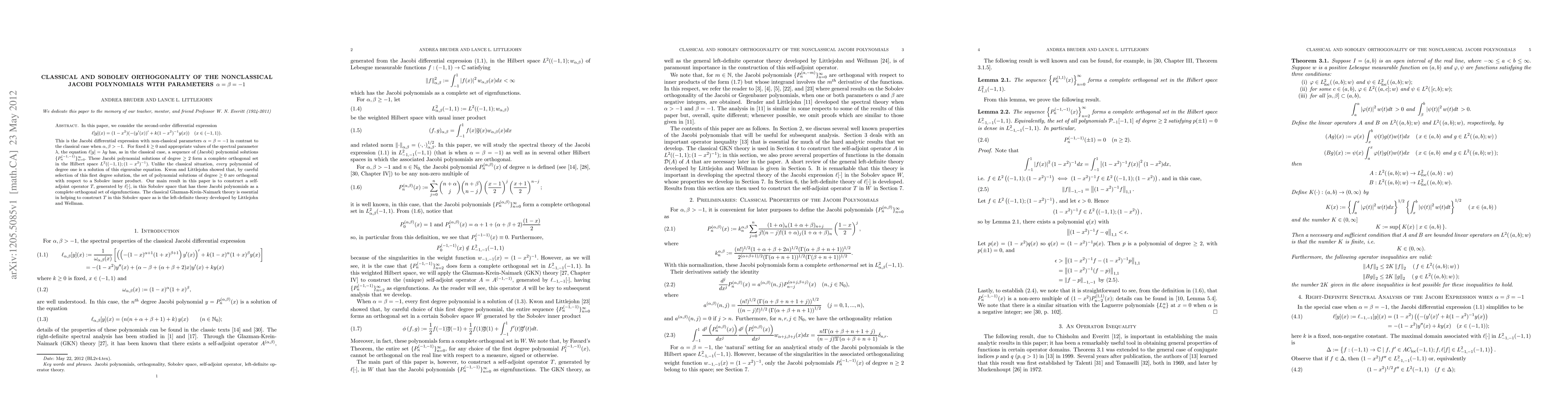 In this paper, we consider the second-order differential expression \ell [y](x)=(1-x^2)(-(y'(x))'+k(1-x^2)^(-1)y(x))(x\in(-1,1)). This is the Jacobi differential expression with non-classical parameters {\alpha} = {\beta}= -1 in contrast to the classical case when {\alpha}, {\beta} > -1. For fixed k \geq 0 and appropriate values of the spectral parameter {\lambda}, the equation \ell[y]={\lambda}y has, as in the classical case, a sequence of (Jacobi) polynomial solutions {P_{n}^{(-1,-1)}}_{n=0}^{\infty}. These Jacobi polynomial solutions of degree \geq 2 form a complete orthogonal set in the Hilbert space L^2((-1,1);(1-x^2)^(-1). Unlike the classical situation, every polynomial of degree one is a solution of this eigenvalue equation. Kwon and Littlejohn showed that, by careful selection of this first degree solution, the set of polynomial solutions of degree \geq 0 are orthogonal with respect to a Sobolev inner product. Our main result in this paper is to construct a self-adjoint operator T, generated by \ell[\cdot], in this Sobolev space that has these Jacobi polynomials as a complete orthogonal set of eigenfunctions. The classical Glazman-Krein-Naimark theory is essential in helping to construct T in this Sobolev space as is the left-definite theory developed by Littlejohn and Wellman.