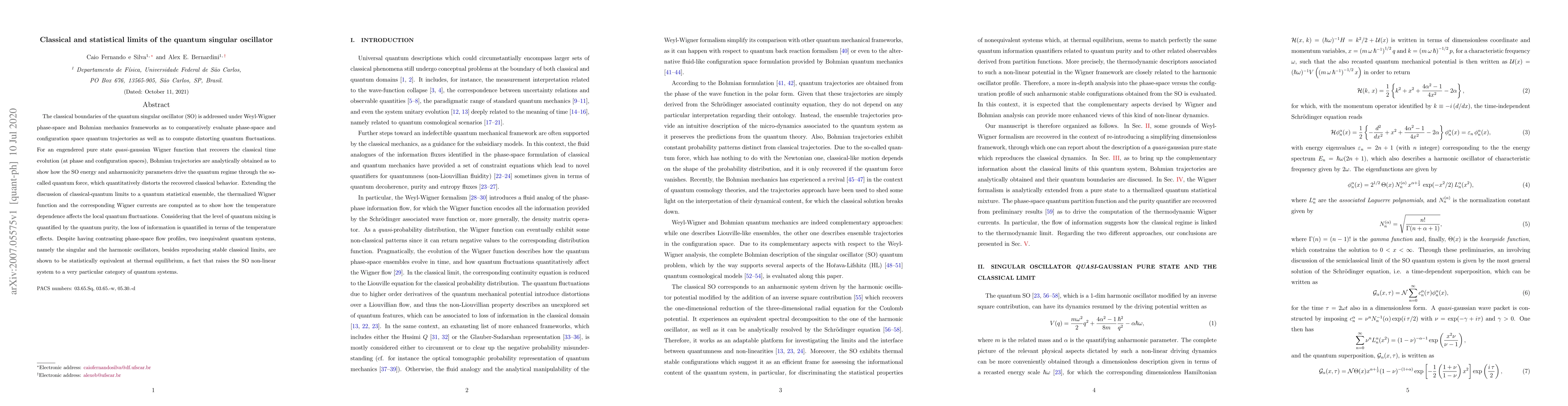 This paper investigates the classical limits of the quantum singular oscillator (SO) using Weyl-Wigner phase-space and Bohmian mechanics, comparing quantum trajectories and fluctuations. It reveals that despite different phase-space flows, the SO and harmonic oscillators are statistically equivalent at thermal equilibrium, highlighting the SO's unique quantum characteristics.