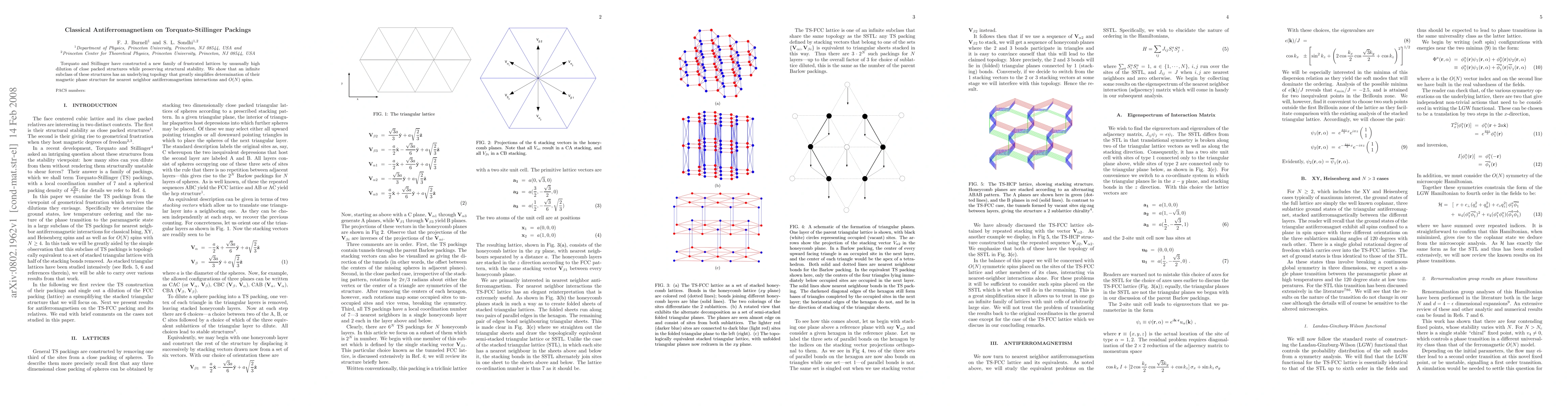 This paper investigates the magnetic phase structure of Torquato-Stillinger packings, revealing that a specific subclass of these lattices simplifies the analysis of classical antiferromagnetism due to their unique topological properties. The study focuses on nearest neighbor antiferromagnetic interactions and O(N) spin systems.
