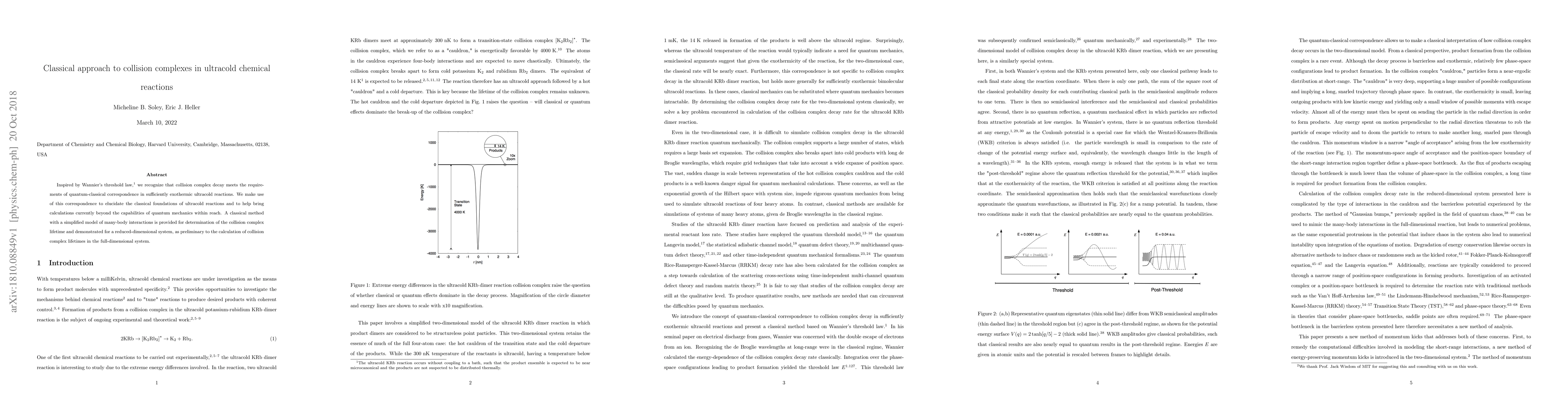 Inspired by Wannier's threshold law, we recognize that collision complex decay meets the requirements of quantum-classical correspondence in sufficiently exothermic ultracold reactions. We make use of this correspondence to elucidate the classical foundations of ultracold reactions and to help bring calculations currently beyond the capabilities of quantum mechanics within reach. A classical method with a simplified model of many-body interactions is provided for determination of the collision complex lifetime and demonstrated for a reduced-dimensional system, as preliminary to the calculation of collision complex lifetimes in the full-dimensional system.
