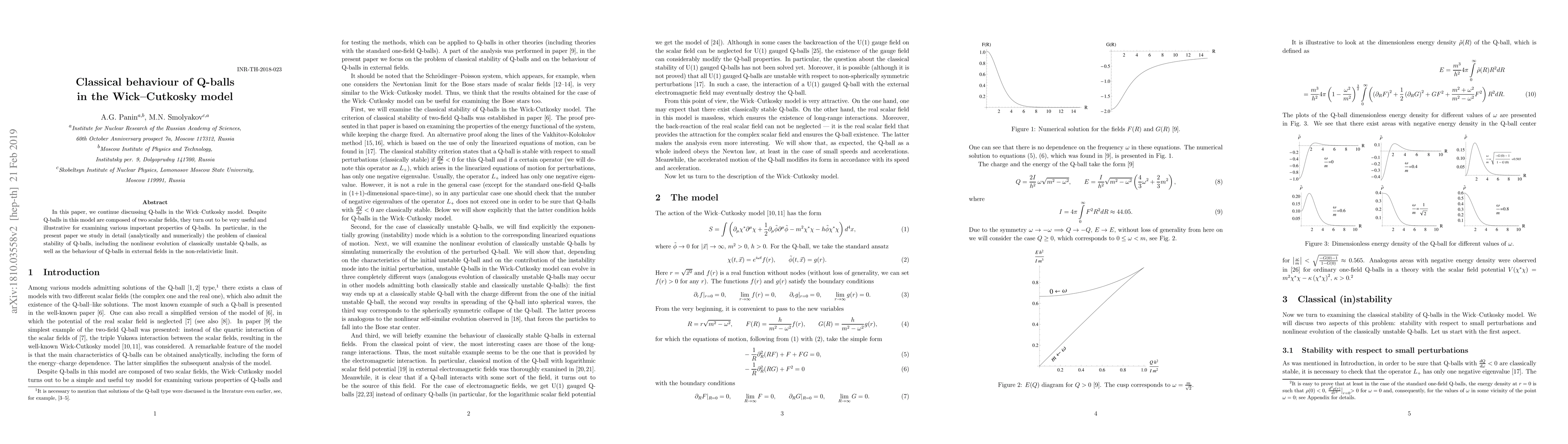 This paper studies the classical stability of Q-balls in the Wick-Cutkosky model, including their nonlinear evolution and behavior in external fields.