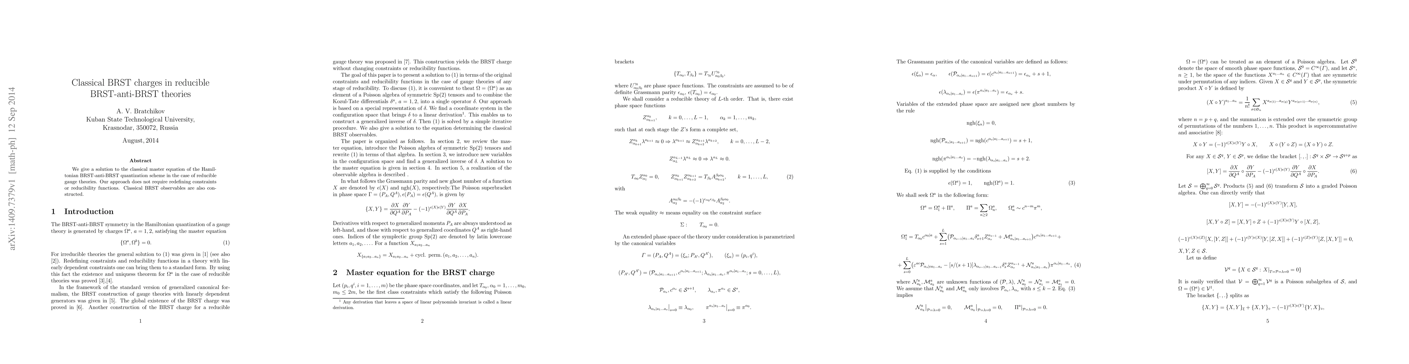This paper presents a solution to the classical master equation for the BRST-anti-BRST quantization scheme in reducible gauge theories without redefining constraints. It also constructs classical BRST observables.