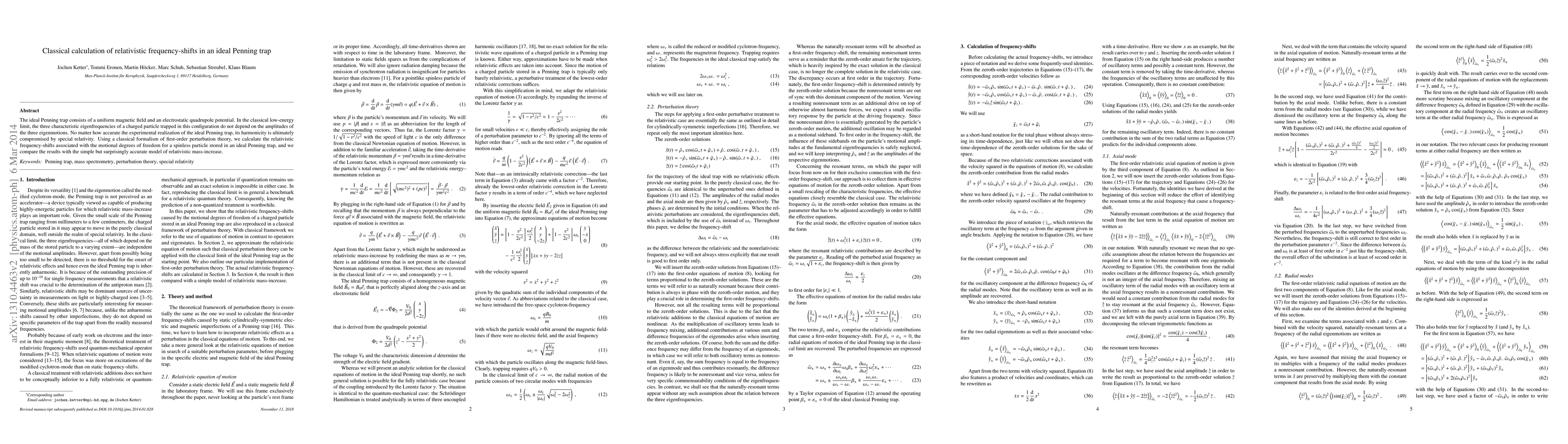 This paper calculates relativistic frequency-shifts in an ideal Penning trap using classical first-order perturbation theory, demonstrating that despite perfect trap conditions, special relativity still affects the harmonicity. The results are compared to the model of relativistic mass-increase.