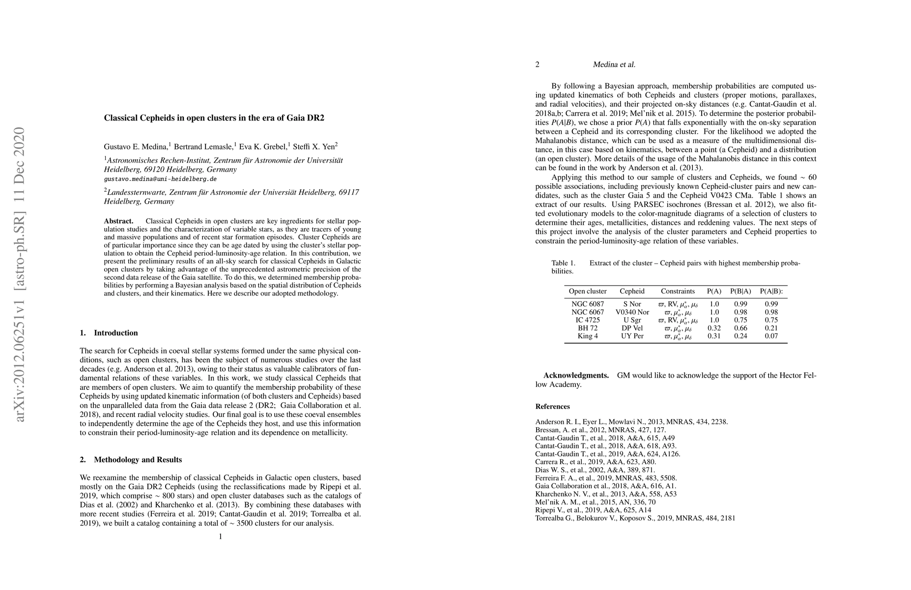 This paper presents a preliminary all-sky search for classical Cepheids in Galactic open clusters using the high-precision data from Gaia DR2, employing Bayesian analysis to determine membership probabilities based on spatial and kinematic distributions. The study aims to characterize young stellar populations and recent star formation episodes.