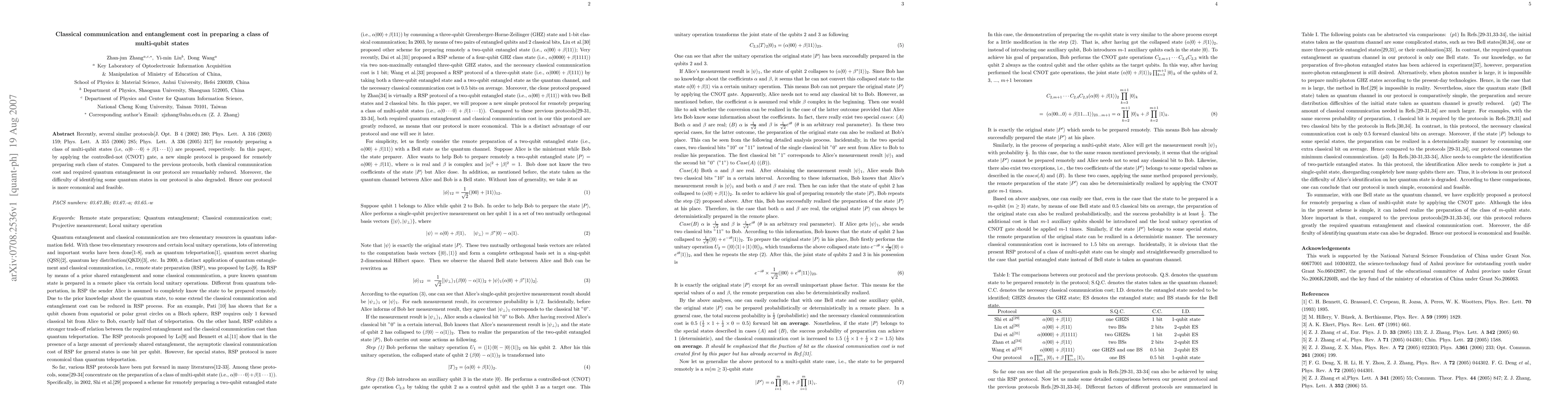 This paper presents a novel protocol for remotely preparing a specific class of multi-qubit states using the CNOT gate, significantly reducing both classical communication cost and entanglement requirements compared to previous methods. The protocol is also more practical due to easier state identification.