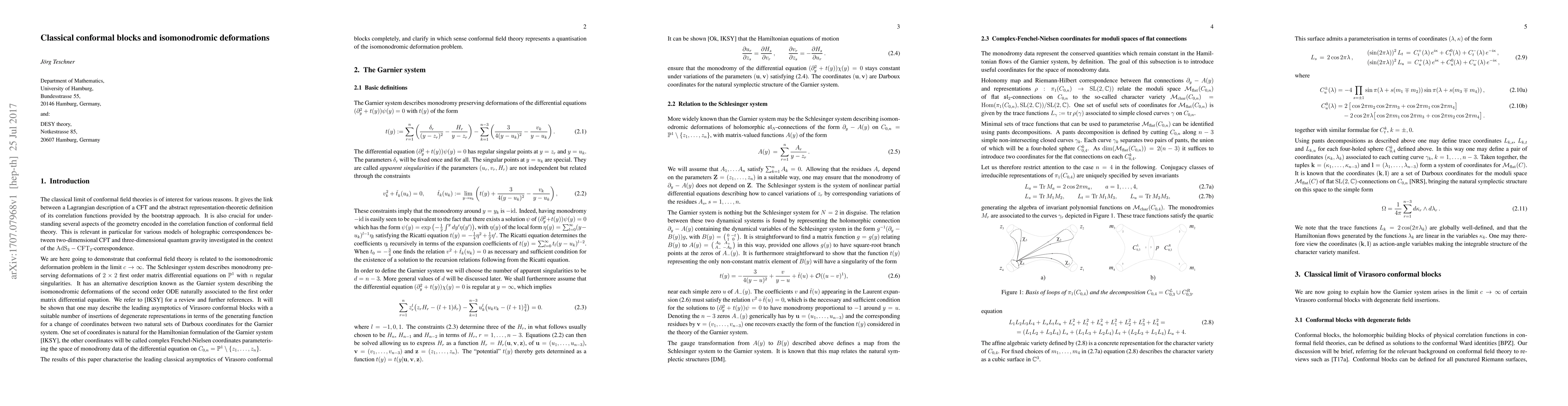 The leading classical asymptotics of Virasoro conformal blocks on the Riemann sphere with n generic and n-3 "heavy" degenerate field insertions can be described in terms of the geometry of Garnier system describing the monodromy preserving deformations of second order Fuchsian differential equations on an n-punctured sphere. This allows us to characterise the leading classical asymptotics of Virasoro conformal blocks completely, and to clarify in which sense conformal field theory represents a quantisation of the isomonodromic deformation problem.