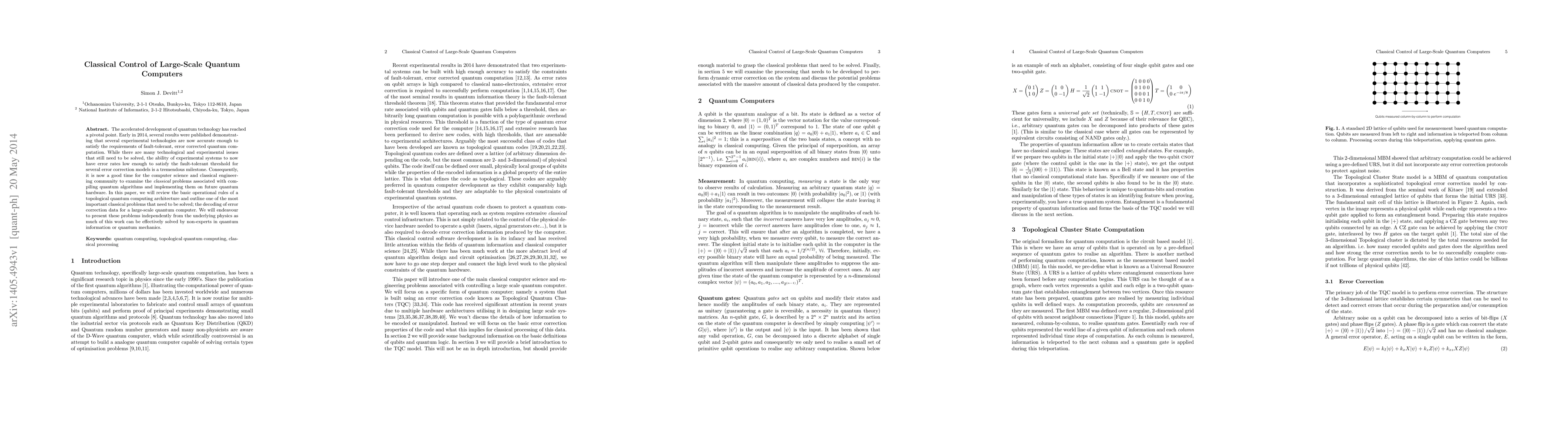 The accelerated development of quantum technology has reached a pivotal point. Early in 2014, several results were published demonstrating that several experimental technologies are now accurate enough to satisfy the requirements of fault-tolerant, error corrected quantum computation. While there are many technological and experimental issues that still need to be solved, the ability of experimental systems to now have error rates low enough to satisfy the fault-tolerant threshold for several error correction models is a tremendous milestone. Consequently, it is now a good time for the computer science and classical engineering community to examine the {\em classical} problems associated with compiling quantum algorithms and implementing them on future quantum hardware. In this paper, we will review the basic operational rules of a topological quantum computing architecture and outline one of the most important classical problems that need to be solved; the decoding of error correction data for a large-scale quantum computer. We will endeavour to present these problems independently from the underlying physics as much of this work can be effectively solved by non-experts in quantum information or quantum mechanics.