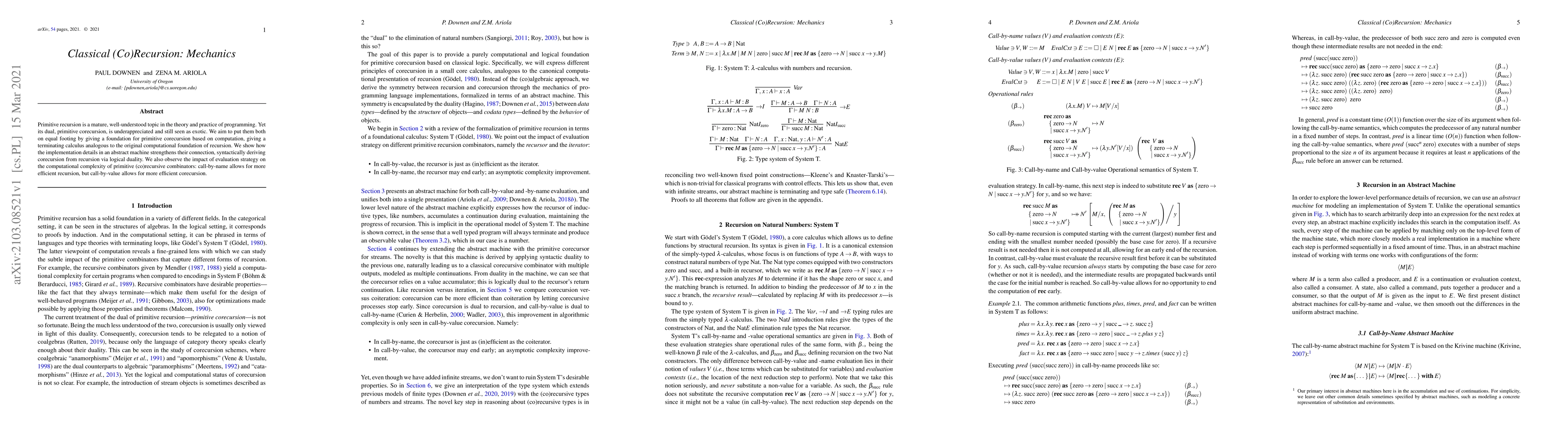 Primitive recursion is a mature, well-understood topic in the theory and practice of programming. Yet its dual, primitive corecursion, is underappreciated and still seen as exotic. We aim to put them both on equal footing by giving a foundation for primitive corecursion based on computation, giving a terminating calculus analogous to the original computational foundation of recursion. We show how the implementation details in an abstract machine strengthens their connection, syntactically deriving corecursion from recursion via logical duality. We also observe the impact of evaluation strategy on the computational complexity of primitive (co)recursive combinators: call-by-name allows for more efficient recursion, but call-by-value allows for more efficient corecursion.