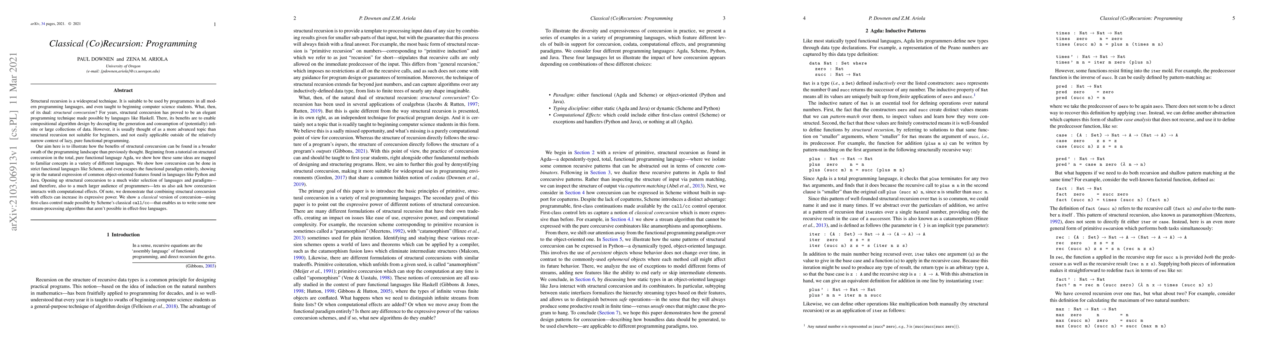 Our aim here is to illustrate how the benefits of structural corecursion can be found in a broader swath of the programming landscape than previously thought. Beginning from a tutorial on structural corecursion in the total, pure functional language Agda, we show how these same ideas are mapped to familiar concepts in a variety of different languages. We show how corecursion can be done in strict functional languages like Scheme, and even escapes the functional paradigm entirely, showing up in the natural expression of common object-oriented features found in languages like Python and Java. Opening up structural corecursion to a much wider selection of languages and paradigms -- and therefore, also to a much larger audience of programmers -- lets us also ask how corecursion interacts with computational effects. Of note, we demonstrate that combining structural corecursion with effects can increase its expressive power. We show a classical version of corecursion -- using first-class control made possible by Scheme's classical call/cc -- that enables us to write some new stream-processing algorithms that aren't possible in effect-free languages.