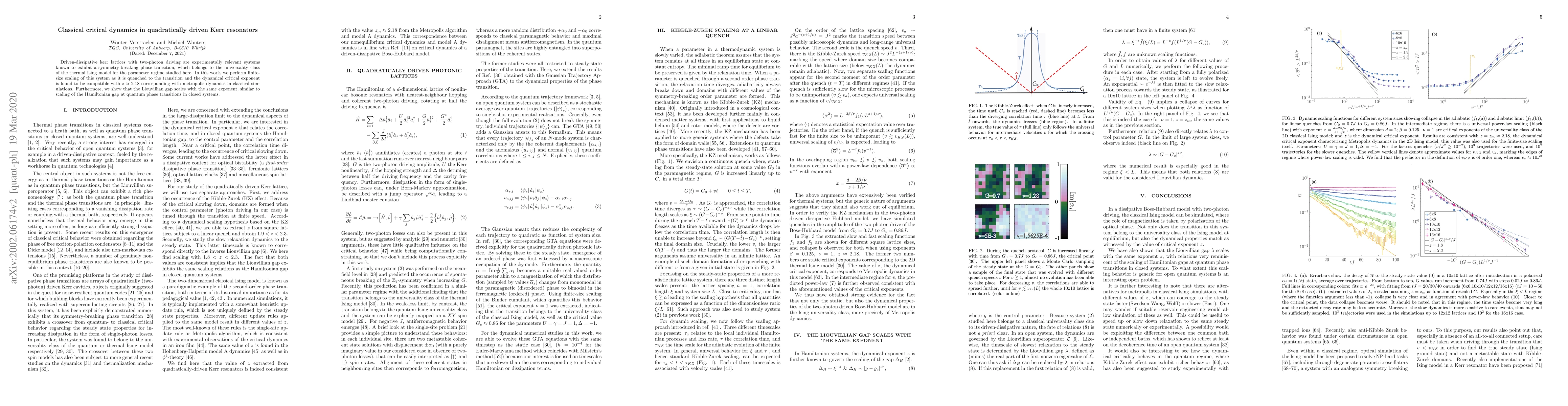 This research experimentally studies a system of driven-dissipative Kerr lattices, finding it exhibits a phase transition akin to the Ising model's thermal transition. The dynamical critical exponent was measured to be approximately 2.18, resembling classical Metropolis dynamics, and the Liouvillian gap's scaling behavior mirrors Hamiltonian gap scaling at quantum phase transitions.