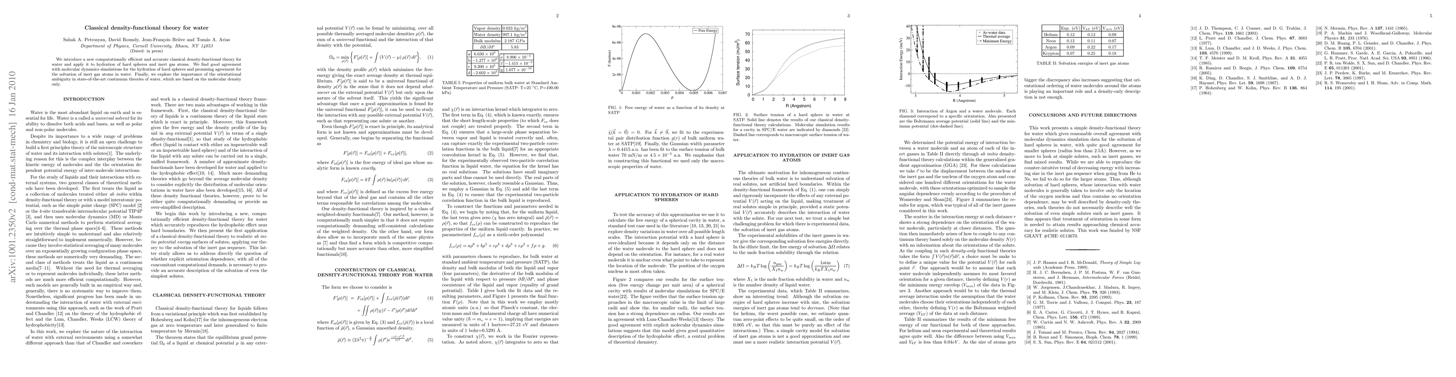 This paper presents a new classical density-functional theory for water, demonstrating its accuracy and computational efficiency through applications to the hydration of hard spheres and inert gas atoms, showing promising results compared to molecular dynamics simulations. It also discusses the significance of orientational ambiguity in existing continuum models of water.