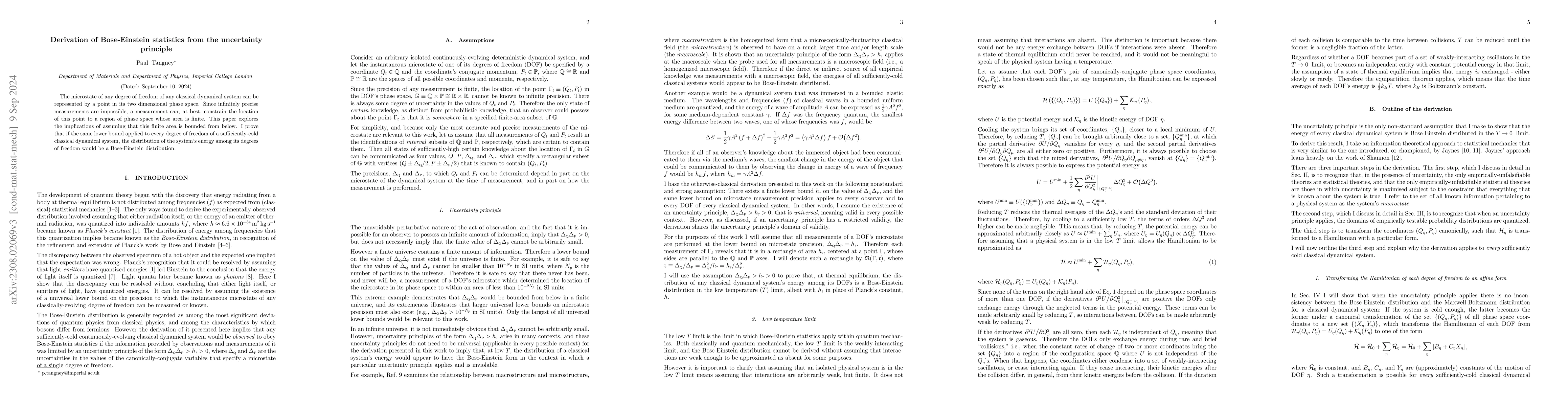 Without invoking quantum mechanics I prove that, at thermal equilibrium, the observed distribution of energy among any set of non-interacting harmonic oscillators is a Bose-Einstein distribution, albeit with an unknown constant, ${h_?}$, in place of Planck's constant, $h$. I identify characteristics of the classical independent-oscillator Hamiltonian that make my derivation of the Bose-Einstein distribution possible, and I point out that other classical physical systems, such as an ideal gas, have Hamiltonians that can be transformed canonically into forms with these characteristics. If ${h_?=h}$, among the implications of this work are that (i) there is no discrepancy between the experimentally-observed spectrum of a blackbody and what should be expected if light was a mechanical wave in a bounded medium; (ii) there is no discrepancy between the experimentally-observed temperature dependence of a crystal's heat capacity and what should be expected of classical lattice waves; and (iii) when a cluster of massive particles is cold enough, the classical expectation should be that almost all of its vibrational energy is possessed by its lowest-frequency normal mode. Therefore, below a certain temperature, all but one of its degrees of freedom are almost inactive and it is a Bose-Einstein condensate.