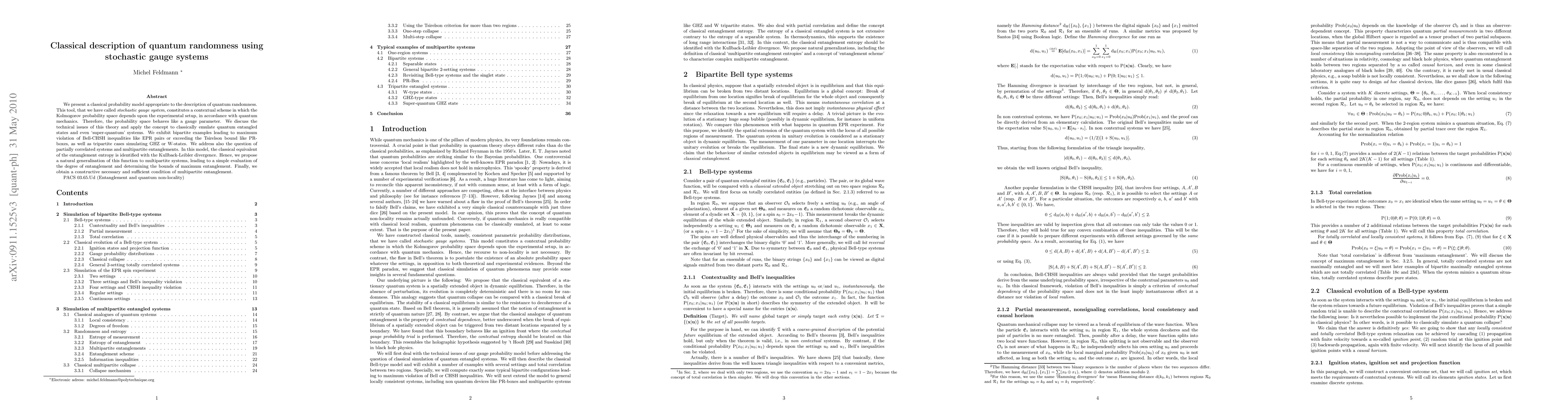 We present a classical probability model appropriate to the description of quantum randomness. This tool, that we have called stochastic gauge system, constitutes a contextual scheme in which the Kolmogorov probability space depends upon the experimental setup, in accordance with quantum mechanics. Therefore, the probability space behaves like a gauge parameter. We discuss the technical issues of this theory and apply the concept to classically emulate quantum entangled states and even `super-quantum' systems. We exhibit bipartite examples leading to maximum violation of Bell-CHSH inequalities like EPR pairs or exceeding the Tsirelson bound like PR-boxes, as well as tripartite cases simulating GHZ or W-states. We address also the question of partially correlated systems and multipartite entanglements. In this model, the classical equivalent of the entanglement entropy is identified with the Kullback-Leibler divergence. Hence, we propose a natural generalisation of this function to multipartite systems, leading to a simple evaluation of the degree of entanglement and determining the bounds of maximum entanglement. Finally, we obtain a constructive necessary and sufficient condition of multipartite entanglement.