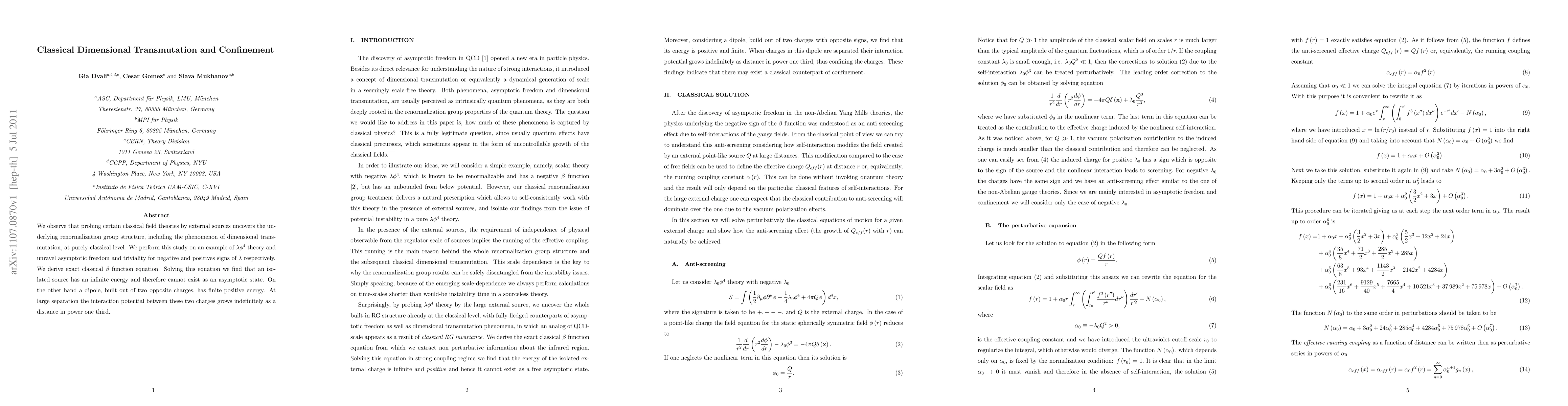 This paper explores classical field theories, revealing the renormalization group structure and dimensional transmutation at a purely classical level. It demonstrates asymptotic freedom and triviality in $\lambda\phi^{4}$ theory, deriving an exact classical $\beta$ function equation, which shows that isolated sources cannot exist due to infinite energy, while dipoles have finite energy and exhibit a power-law interaction potential.