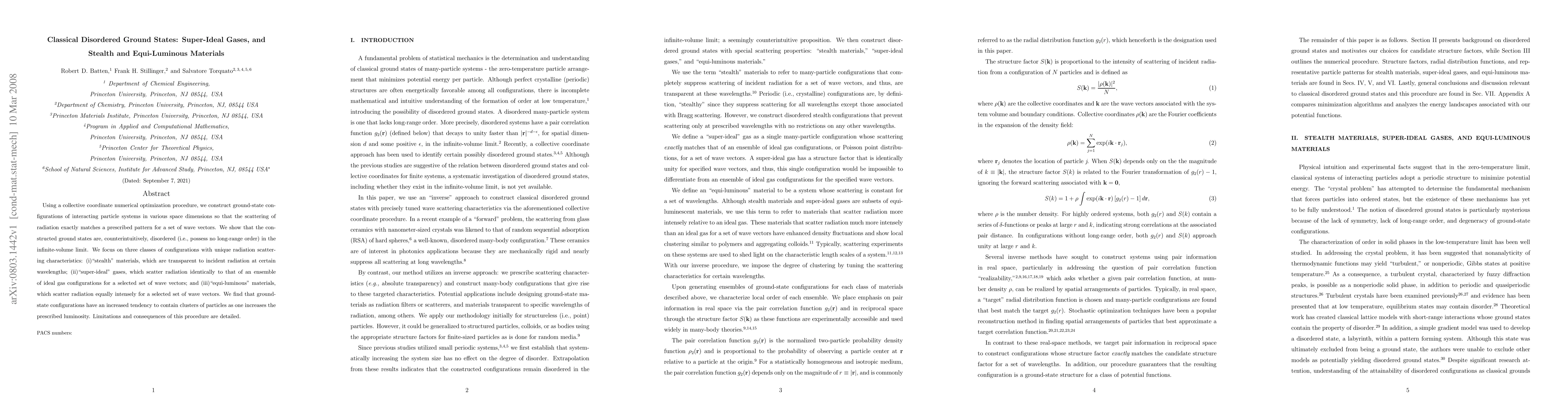Researchers created ground-state configurations for interacting particles with unique radiation scattering properties, including stealth materials, super-ideal gases, and equi-luminous materials, which defy traditional expectations of order in such systems.