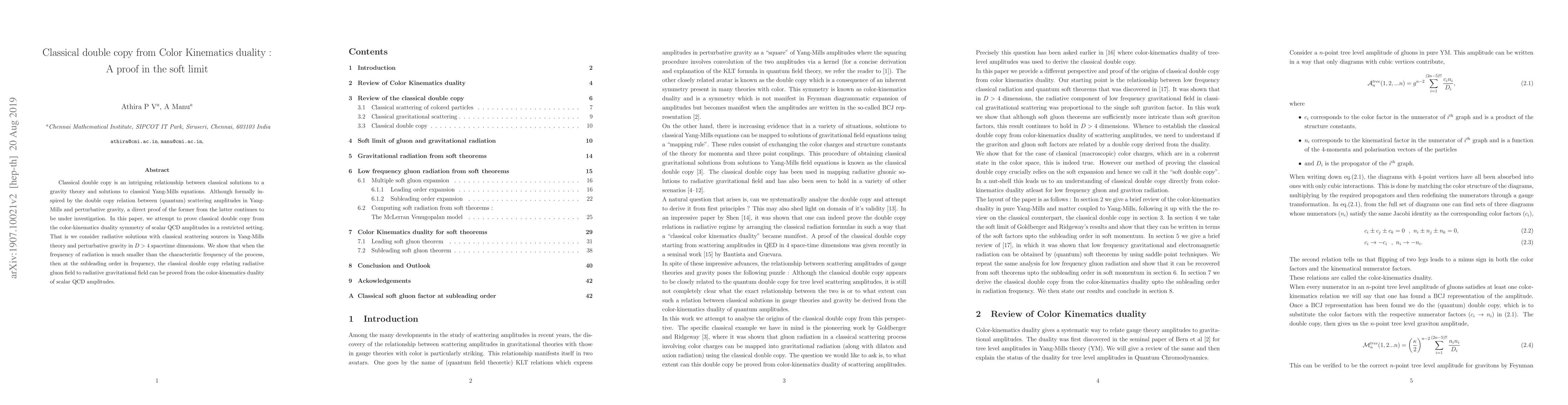 This paper demonstrates a proof of the classical double copy relationship between classical gravity and Yang-Mills solutions in the soft limit, using the color-kinematics duality found in QCD amplitudes. The authors show that when radiation frequency is much lower than the process's characteristic frequency, the classical double copy emerges from this duality.