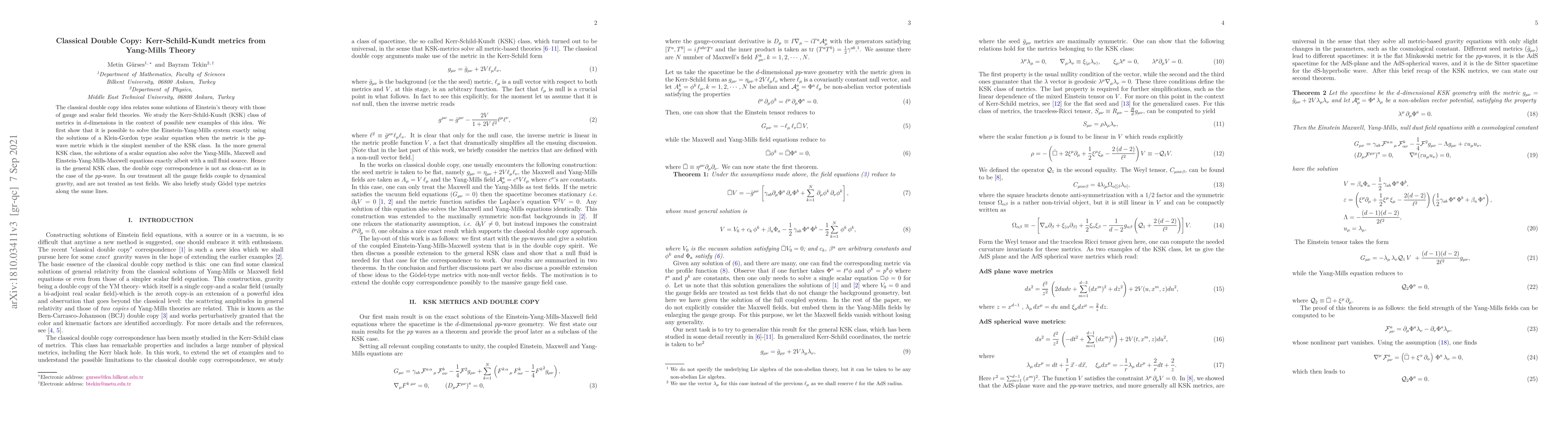The classical double copy idea relates some solutions of Einstein's theory with those of gauge and scalar field theories. We study the Kerr-Schild-Kundt (KSK) class of metrics in $d$-dimensions in the context of possible new examples of this idea. We first show that it is possible to solve the Einstein-Yang-Mills system exactly using the solutions of a Klein-Gordon type scalar equation when the metric is the $pp$-wave metric which is the simplest member of the KSK class. In the more general KSK class, the solutions of a scalar equation also solve the Yang-Mills, Maxwell and Einstein-Yang-Mills-Maxwell equations exactly albeit with a null fluid source. Hence in the general KSK class, the double copy correspondence is not as clean-cut as in the case of the $pp$-wave. In our treatment all the gauge fields couple to dynamical gravity, and are not treated as test fields. We also briefly study G\"{o}del type metrics along the same lines.