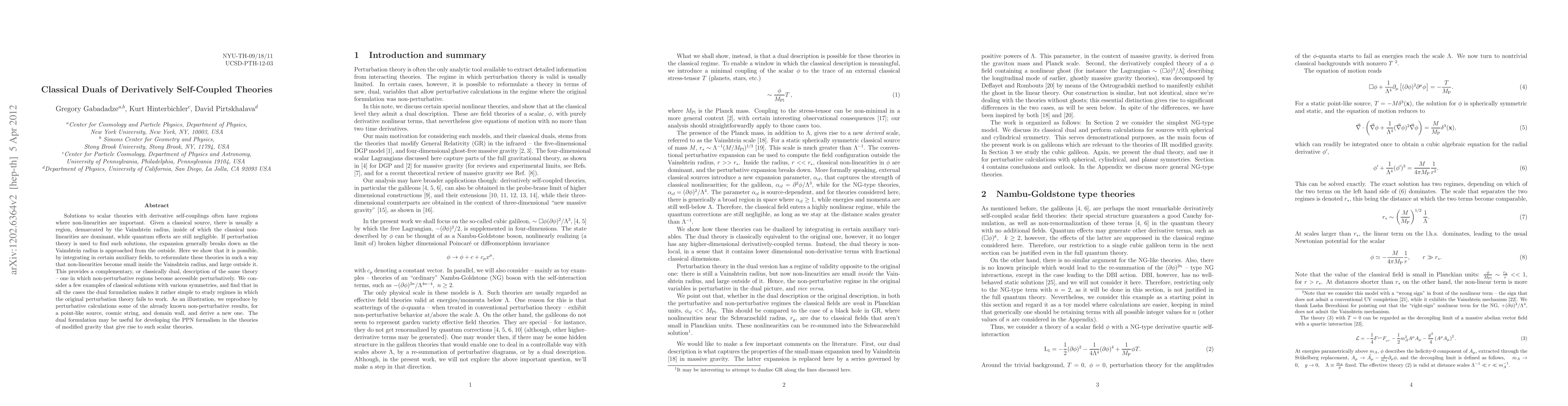 Solutions to scalar theories with derivative self-couplings often have regions where non-linearities are important. Given a classical source, there is usually a region, demarcated by the Vainshtein radius, inside of which the classical non-linearities are dominant, while quantum effects are still negligible. If perturbation theory is used to find such solutions, the expansion generally breaks down as the Vainshtein radius is approached from the outside. Here we show that it is possible, by integrating in certain auxiliary fields, to reformulate these theories in such a way that non-linearities become small inside the Vainshtein radius, and large outside it. This provides a complementary, or classically dual, description of the same theory -- one in which non-perturbative regions become accessible perturbatively. We consider a few examples of classical solutions with various symmetries, and find that in all the cases the dual formulation makes it rather simple to study regimes in which the original perturbation theory fails to work. As an illustration, we reproduce by perturbative calculations some of the already known non-perturbative results, for a point-like source, cosmic string, and domain wall, and derive a new one. The dual formulation may be useful for developing the PPN formalism in the theories of modified gravity that give rise to such scalar theories.