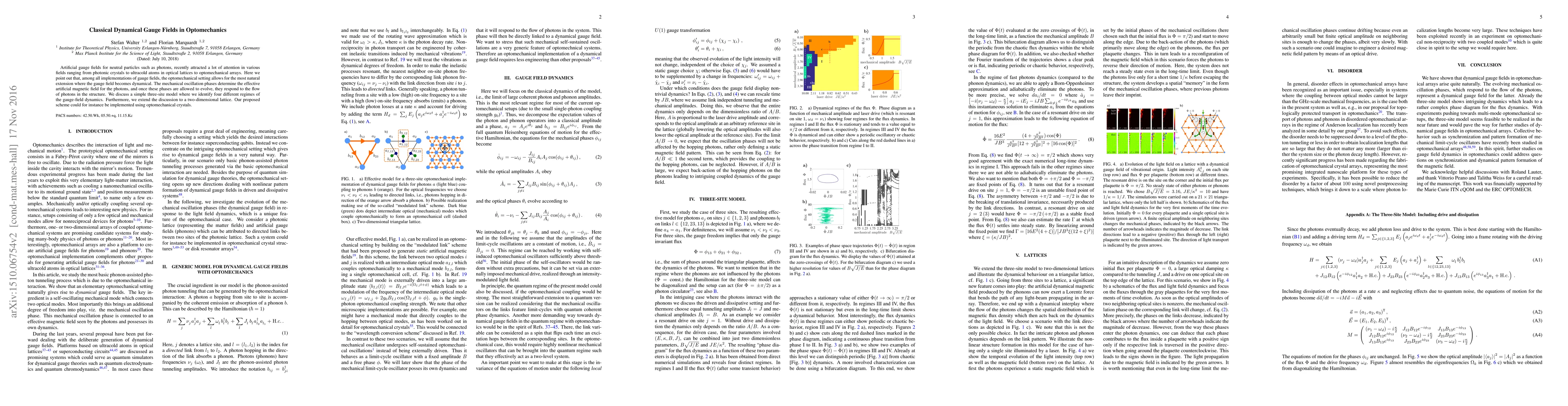 This paper explores the creation of dynamical gauge fields in optomechanical systems, where mechanical oscillations modulate the effective artificial magnetic field for photons. The authors propose a three-site model to identify four distinct dynamical regimes, and extend the concept to a two-dimensional lattice, suggesting potential implementation using optomechanical crystals.