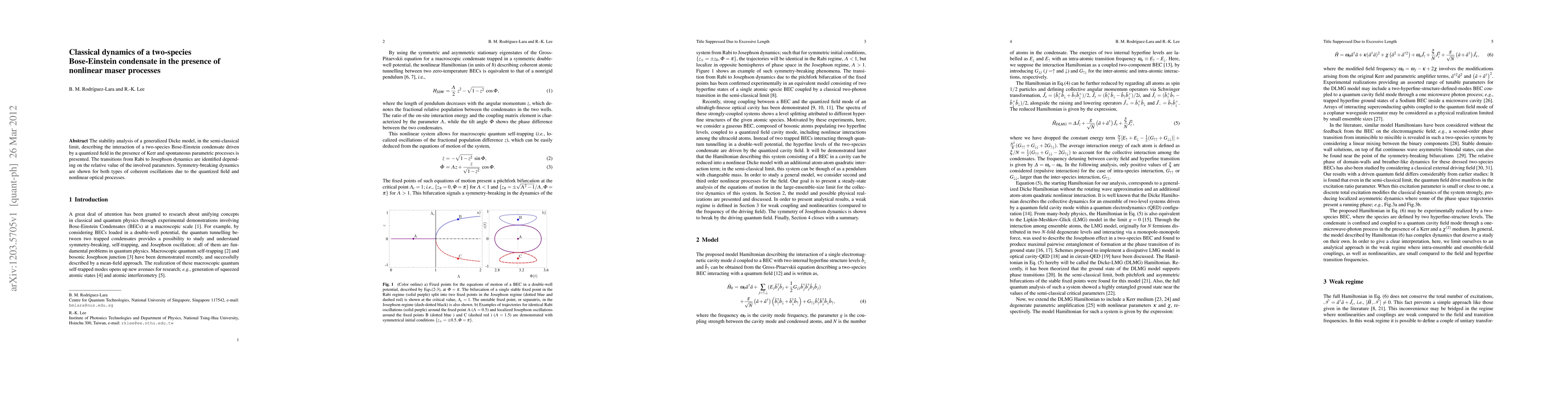 Researchers studied a two-species Bose-Einstein condensate interacting with a quantized field and nonlinear optical processes, finding symmetry-breaking dynamics and transitions between Rabi and Josephson dynamics depending on the relative values of involved parameters.