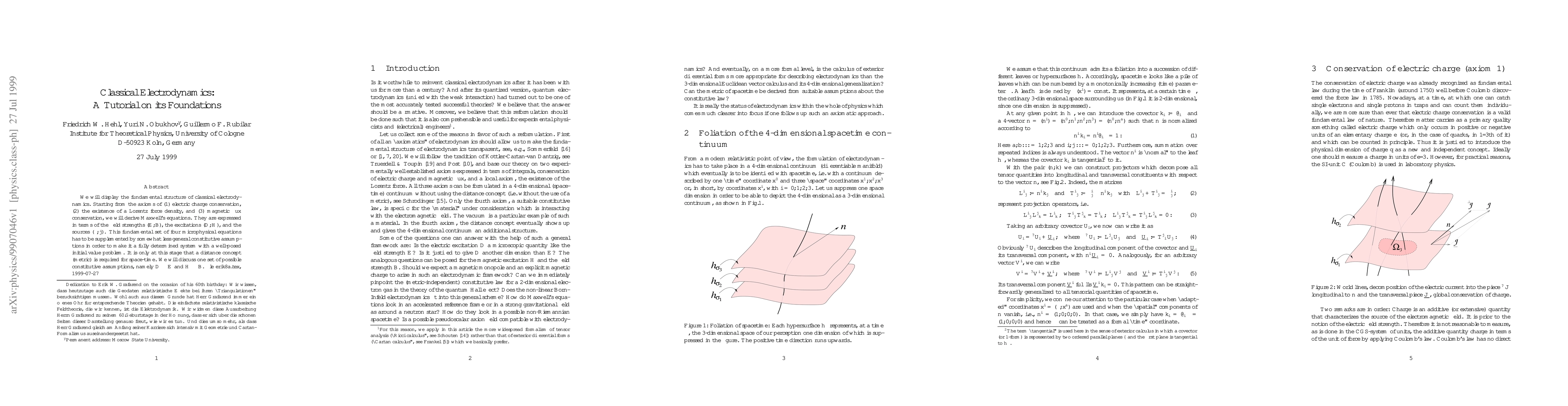 This paper provides a fundamental tutorial on classical electrodynamics, deriving Maxwell's equations from axioms of electric charge conservation, Lorentz force density, and magnetic flux conservation. It presents one set of constitutive assumptions to make the system fully determined with a well-posed initial value problem.