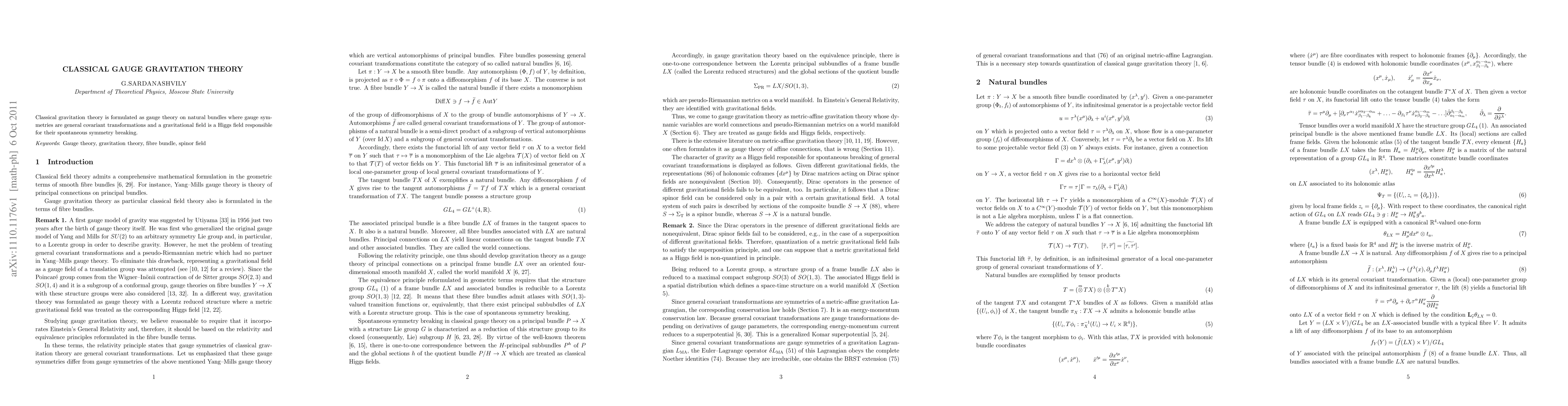 Summary: This paper formulates classical gravitation as a gauge theory on natural bundles, identifying general covariant transformations as gauge symmetries and a gravitational field as a Higgs field driving spontaneous symmetry breaking.