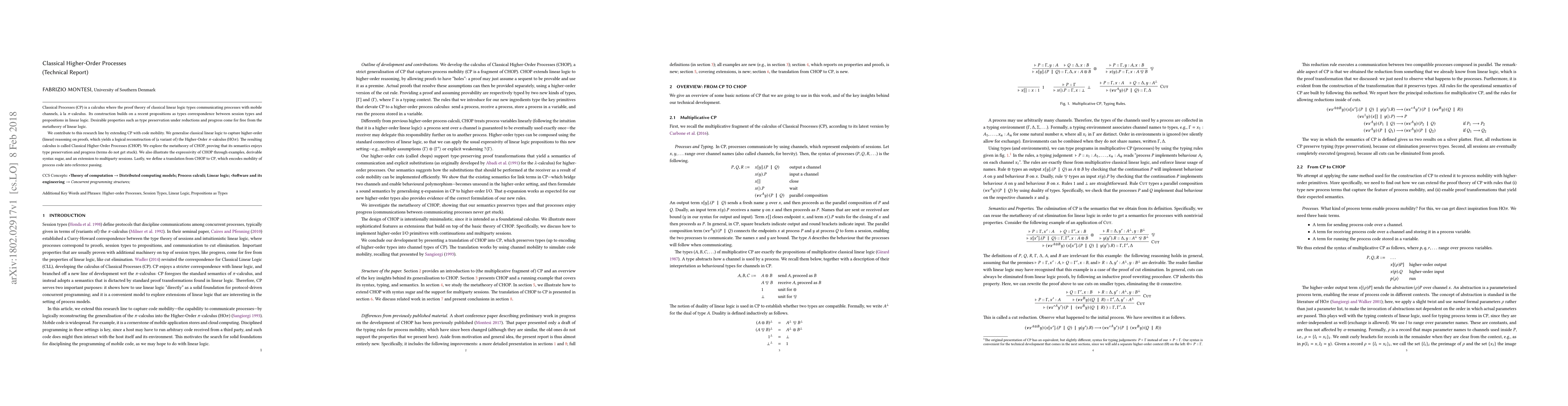 This paper extends Classical Processes with code mobility to form Classical Higher-Order Processes (CHOP), generalizing classical linear logic for higher-order reasoning. It demonstrates CHOP's metatheoretical properties, including type preservation and progress, and explores its expressivity with examples and multiparty sessions.