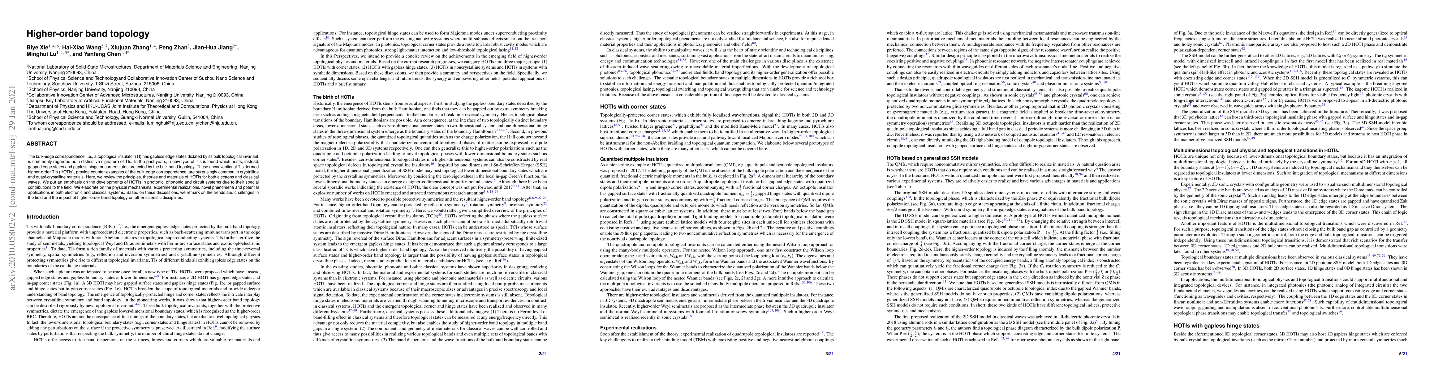 Topological states nurtures the emergence of devices with unprecedented functions in photonics, plasmonics, acoustics and phononics. As one of the recently discovered members, higher-order topological insulators (HOTIs) have been increasingly explored, featuring lower-dimensional topological boundary states, leading to rich mechanisms for topological manipulation, guiding and trapping of classical waves. Here, we provide an overview of current developments of HOTIs in classical waves including basic principles, unique physical properties, various experimental realizations, novel phenomena and potential applications. Based on these discussions, we remark on the trends and challenges in this field and the impacts of higher-order topology on other research fields.