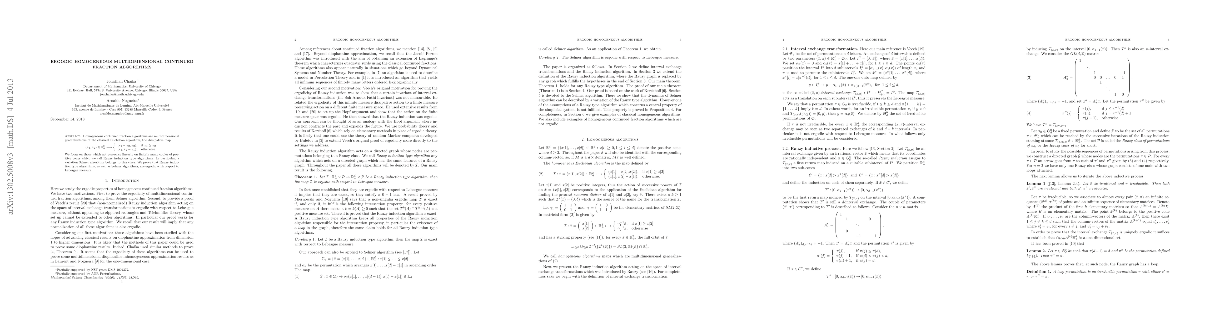 This paper proves that Rauzy induction type algorithms and Selmer algorithms, which are multidimensional generalizations of the classical Euclidean algorithm, are ergodic with respect to Lebesgue measure. The algorithms act piecewise linearly on positive cones and are shown to exhibit ergodic behavior.
