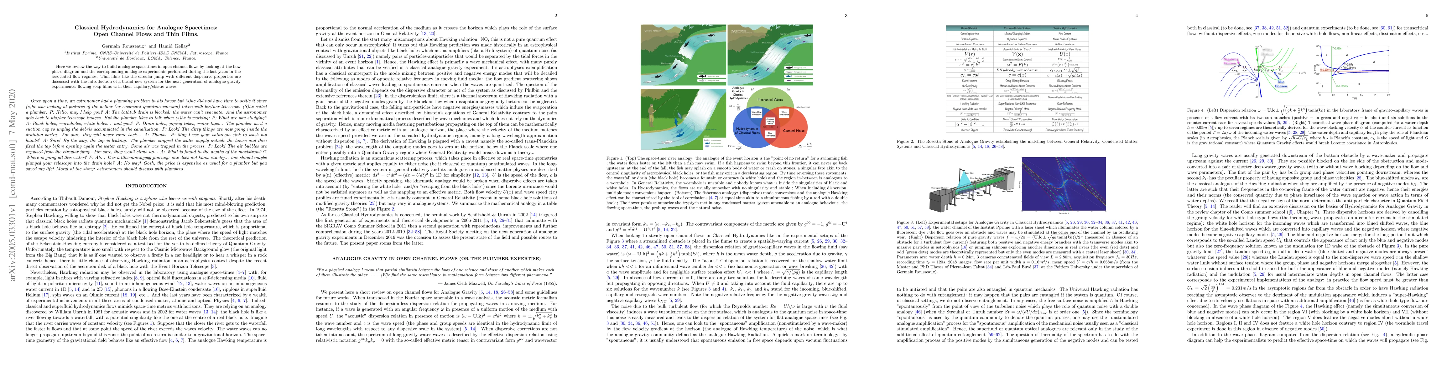 Here we review the way to build analogue spacetimes in open channel flows by looking at the flow phase diagram and the corresponding analogue experiments performed during the last years in the associated flow regimes. Thin films like the circular jump with different dispersive properties are discussed with the introduction of a brand new system for the next generation of analogue gravity experiments: flowing soap films with their capillary/elastic waves.