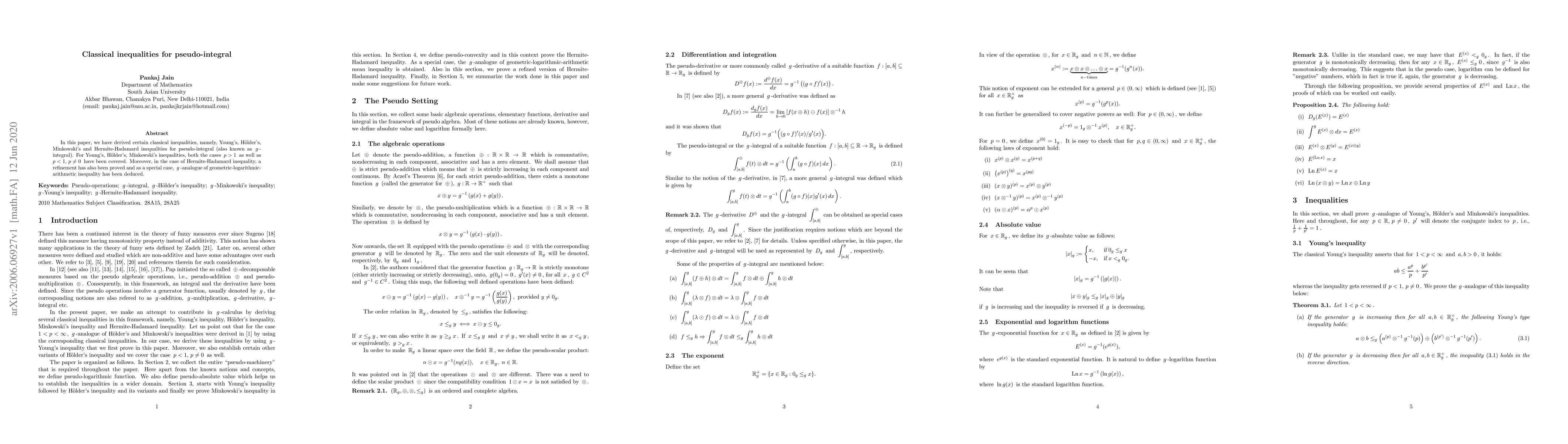 This paper derives classical inequalities for pseudo-integral, including Young's, H"older's, Minkowski's, and Hermite-Hadamard inequalities, with refinements and special cases covered.