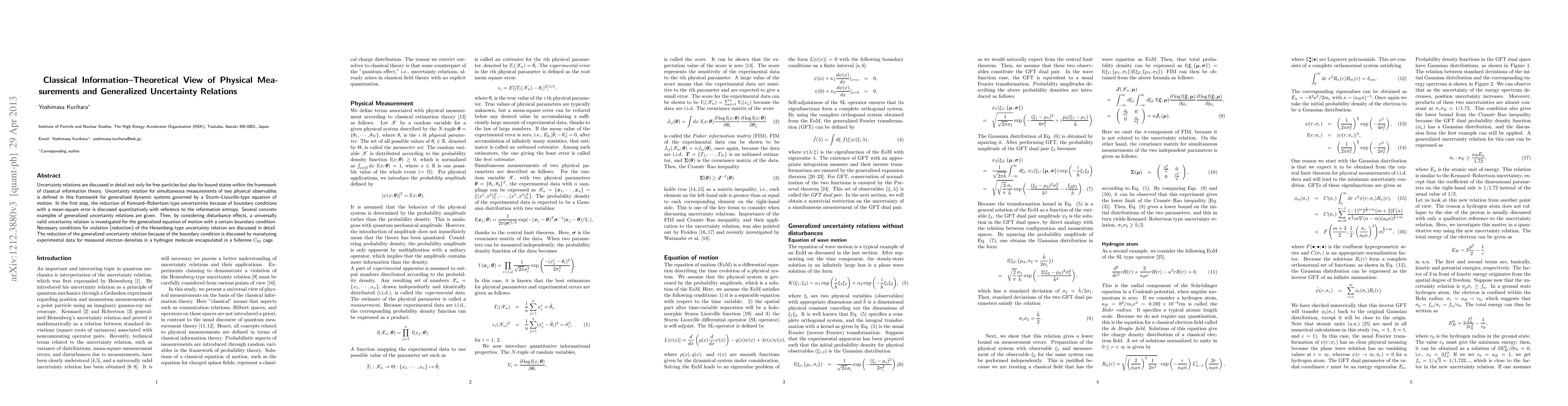 This paper explores the classical information-theoretic framework for characterizing physical measurements and derives generalized uncertainty relations for dynamic systems. It investigates the reduction of uncertainties due to boundary conditions and experimentally tests the generalized uncertainty relation using electron density data in a hydrogen molecule within a fullerene cage.