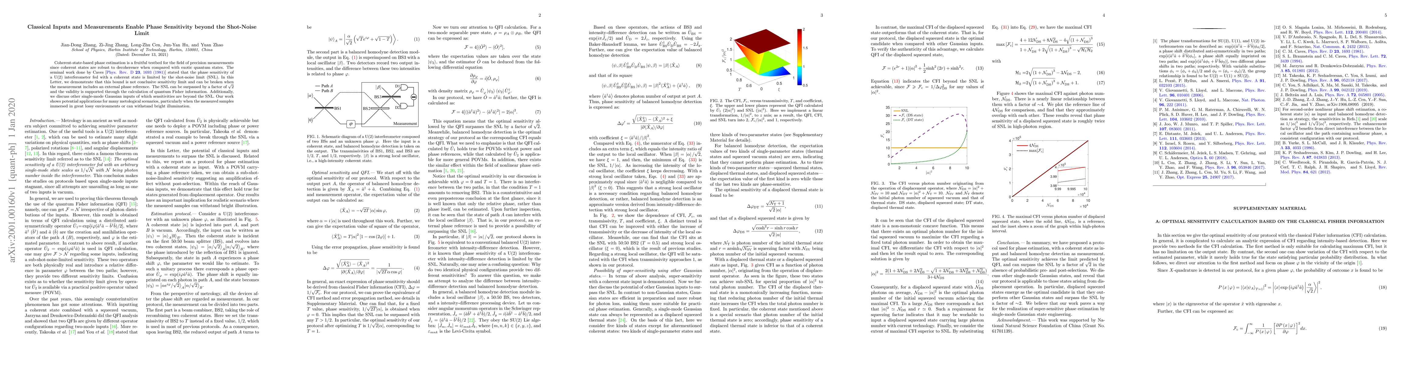 This paper demonstrates that phase sensitivity in coherent-state-based measurements can exceed the shot-noise limit by incorporating an external phase reference, surpassing the limit by a factor of $\sqrt{2}$. The findings are supported by quantum Fisher information calculations and have implications for precision measurements in lossy environments.