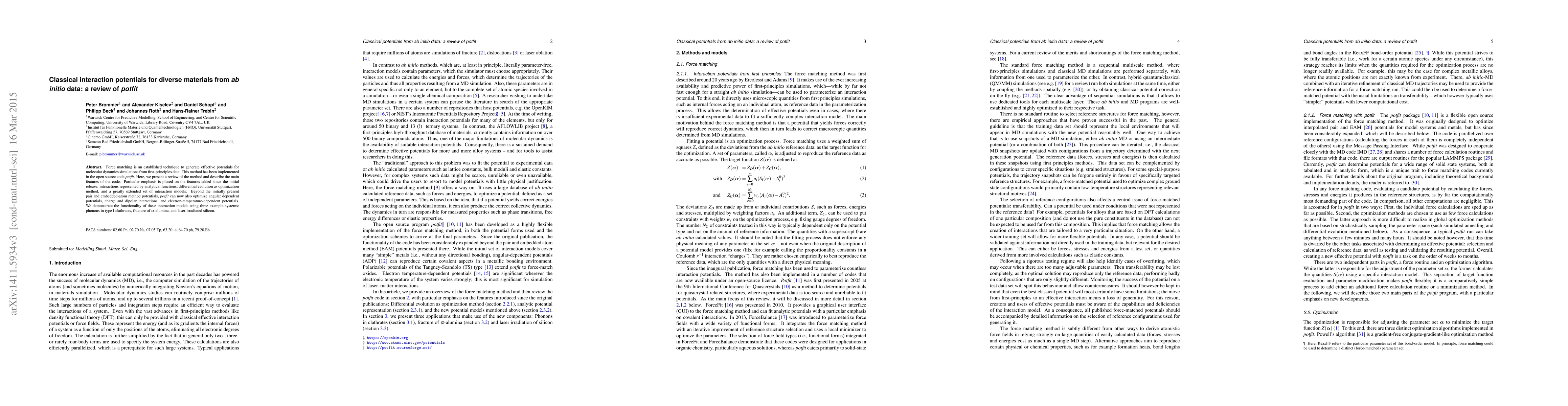 This paper reviews the potfit code, which uses force matching to generate effective potentials from ab initio data for molecular dynamics simulations. It highlights recent enhancements including analytical functions, differential evolution optimization, and expanded interaction models, demonstrating these with examples like phonons in clathrates and fracture in alumina.