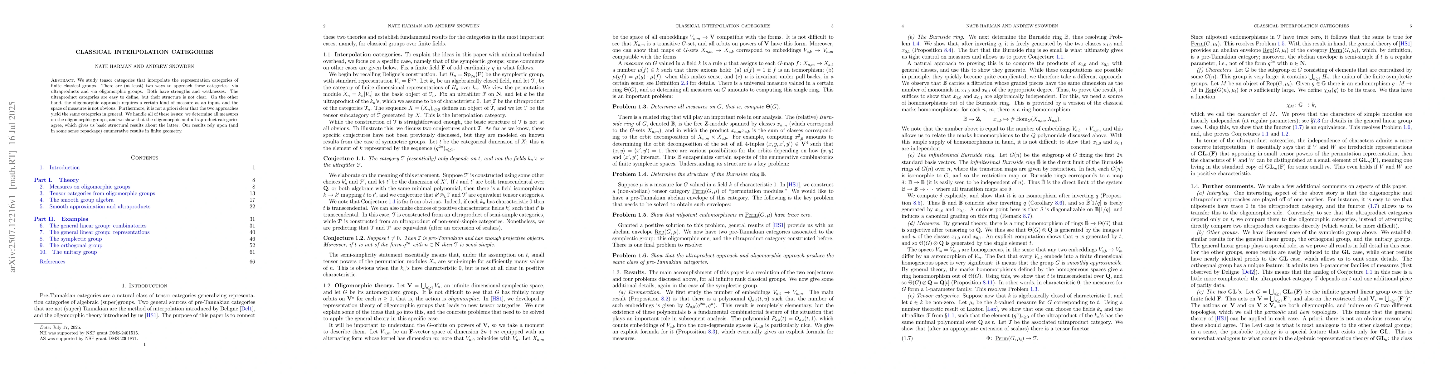We study tensor categories that interpolate the representation categories of finite classical groups. There are (at least) two ways to approach these categories: via ultraproducts and via oligomorphic groups. Both have strengths and weaknesses. The ultraproduct categories are easy to define, but their structure is not clear. On the other hand, the oligomorphic approach requires a certain kind of measure as an input, and the space of measures is not obvious. Furthermore, it is not a priori clear that the two approaches yield the same categories in general. We handle all of these issues: we determine all measures on the oligomorphic groups, and we show that the oligomorphic and ultraproduct categories agree, which gives us basic structural results about the latter. Our results rely upon (and in some sense repackage) enumerative results in finite geometry.