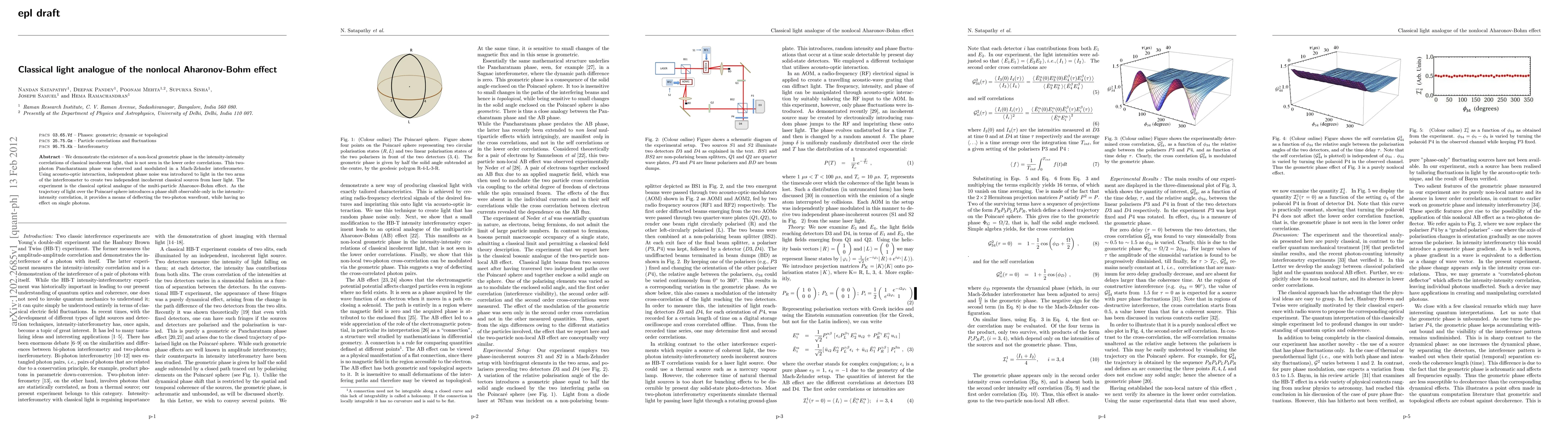 Researchers demonstrate a non-local geometric phase in classical light intensity correlations, analogous to the Aharonov-Bohm effect, using a Mach-Zehnder interferometer.