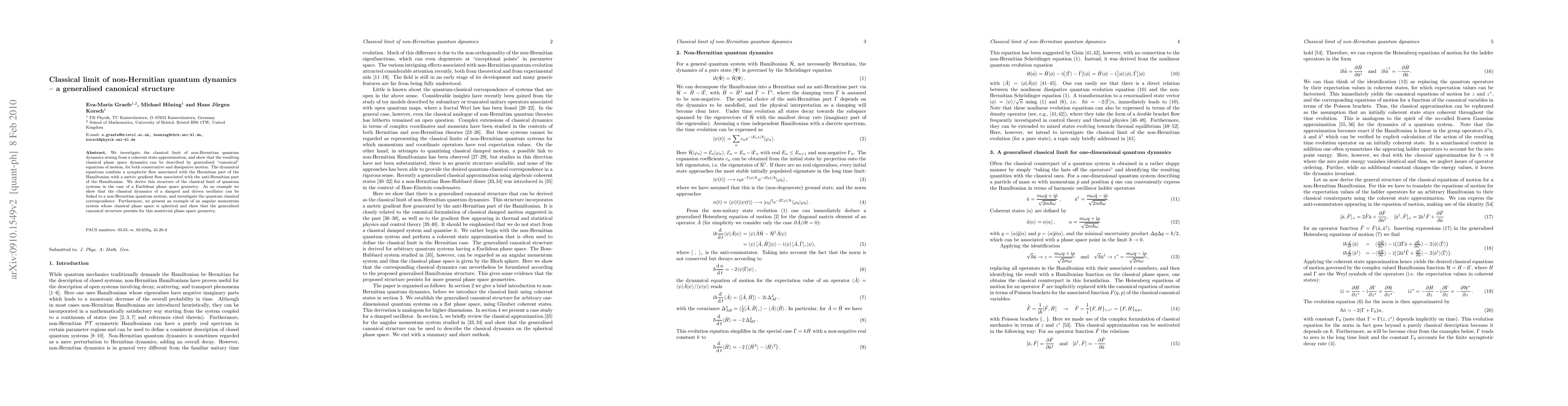 This paper explores the classical limit of non-Hermitian quantum dynamics through coherent state approximation, revealing generalised canonical equations for both conservative and dissipative systems. It demonstrates a combination of symplectic and metric gradient flows in Euclidean phase space, exemplified by a damped oscillator and a spherical angular momentum system.