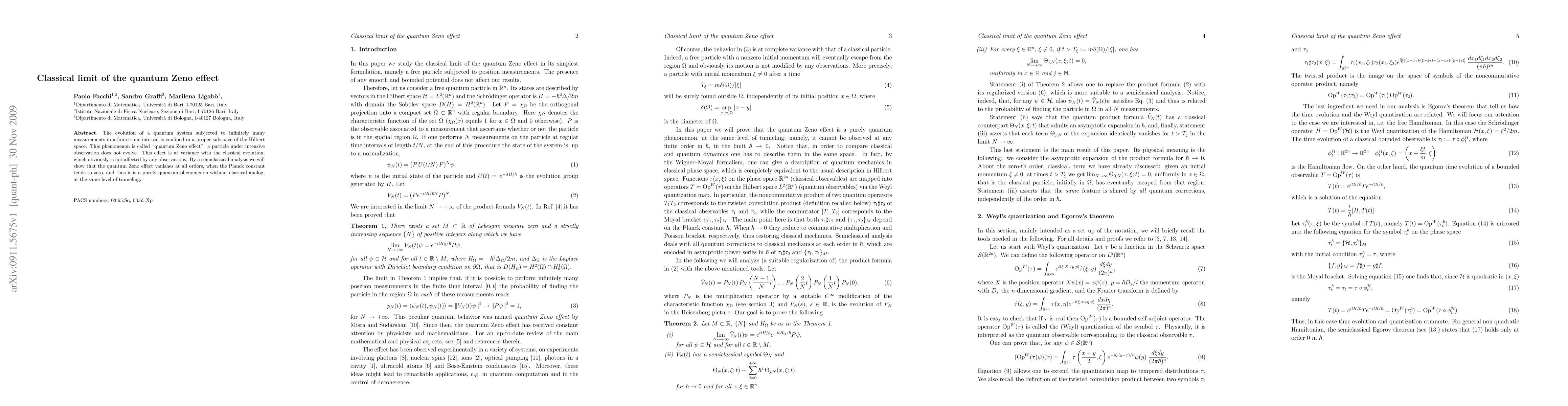 The quantum Zeno effect confines a quantum system in a subspace through frequent measurements, contrasting with classical evolution unaffected by observation. The effect disappears in the classical limit as the Planck constant approaches zero, indicating it is a purely quantum phenomenon.