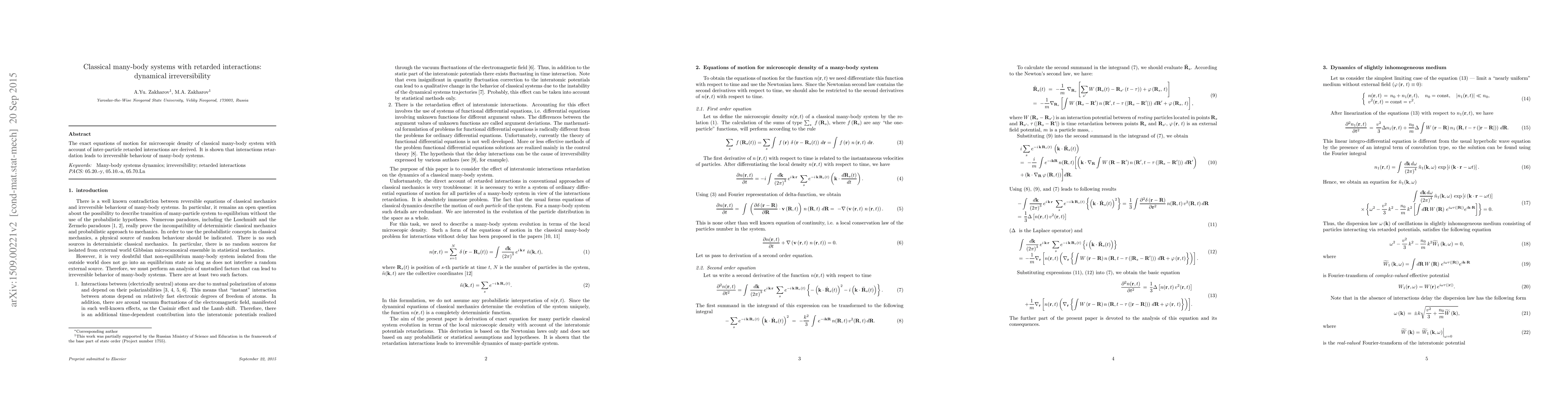 A new mathematical framework was developed to study classical many-body systems with delayed interactions, showing that these systems exhibit irreversible behavior.