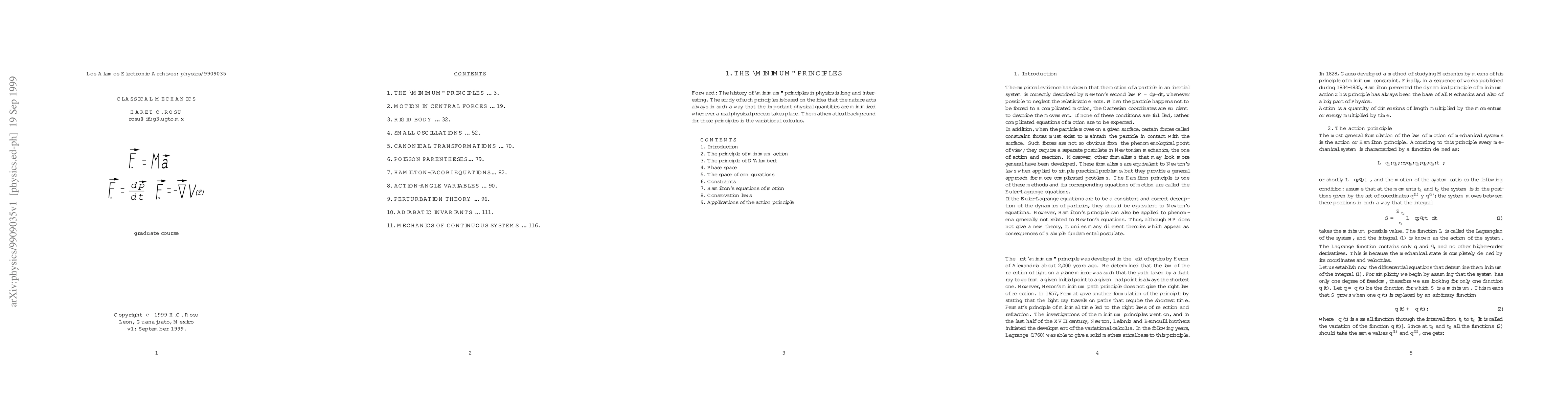 This paper covers classical mechanics, focusing on key concepts and findings from a graduate course. It provides an overview of the subject, covering about 80% of the material taught during a semester in Mexico.