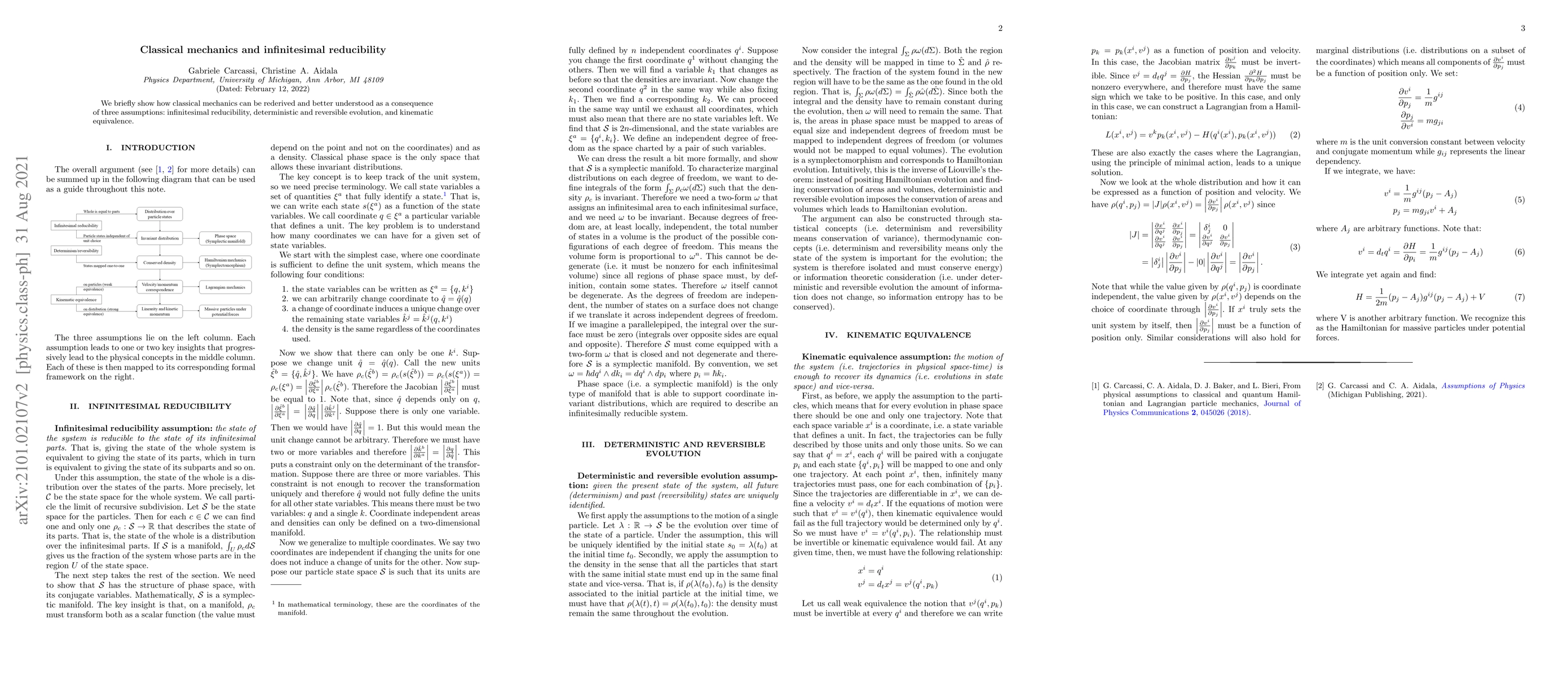 We briefly show how classical mechanics can be rederived and better understood as a consequence of three assumptions: infinitesimal reducibility, deterministic and reversible evolution, and kinematic equivalence.