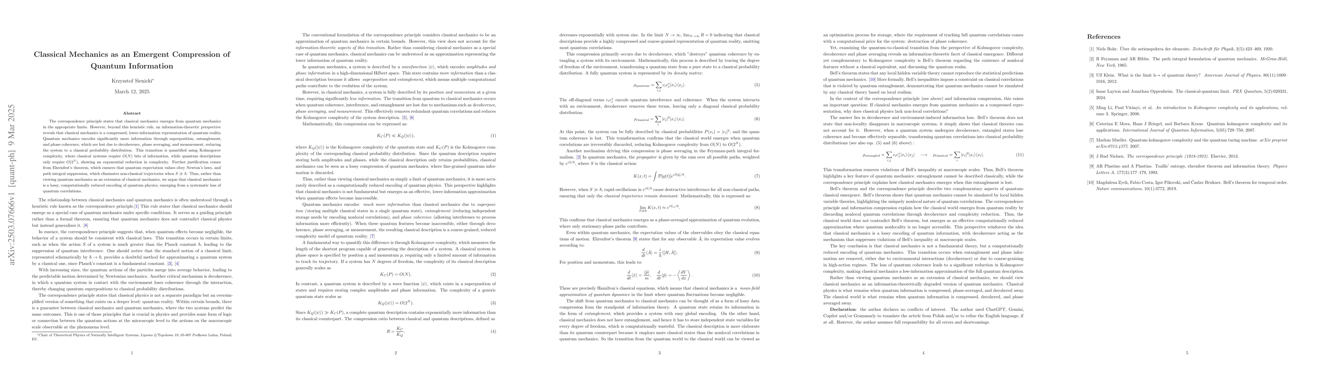 The paper introduces a new information-theoretic perspective on the correspondence principle, quantifying the transition from quantum to classical mechanics using Kolmogorov complexity.