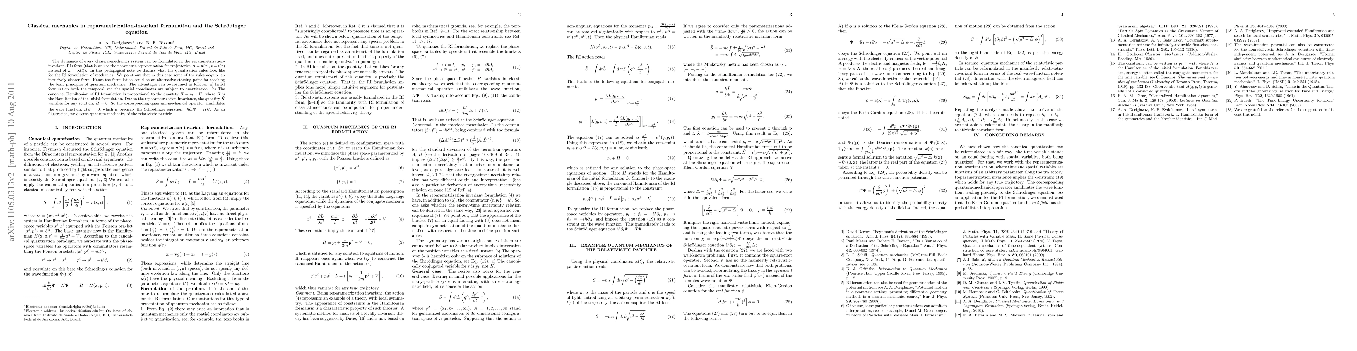 This paper explores the reparametrization-invariant formulation of classical mechanics and its implications for quantum mechanics. It highlights that quantization rules in this formulation lead to a clearer understanding, particularly as the Schrödinger equation emerges naturally from the vanishing of a specific Hamiltonian-related quantity.