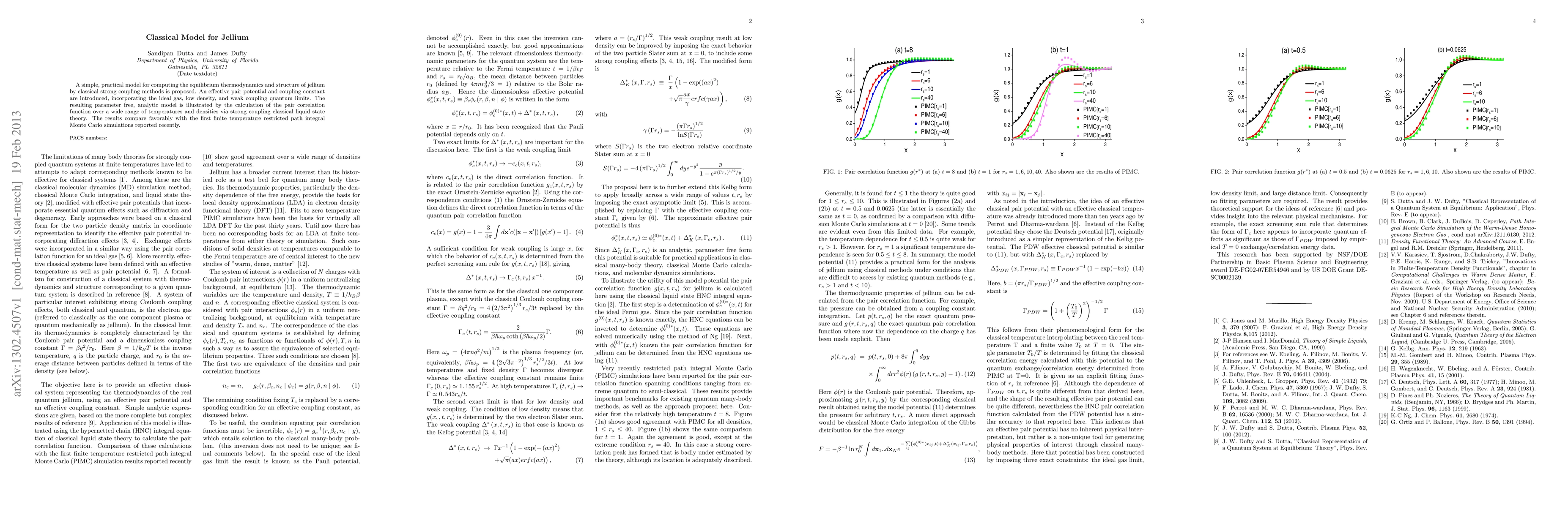 A simple, practical model for computing the equilibrium thermodynamics and structure of jellium by classical strong coupling methods is proposed. An effective pair potential and coupling constant are introduced, incorporating the ideal gas, low density, and weak coupling quantum limits. The resulting parameter free, analytic model is illustrated by the calculation of the pair correlation function over a wide range of temperatures and densities via strong coupling classical liquid state theory. The results compare favorably with the first finite temperature restricted path integral Monte Carlo simulations reported recently.