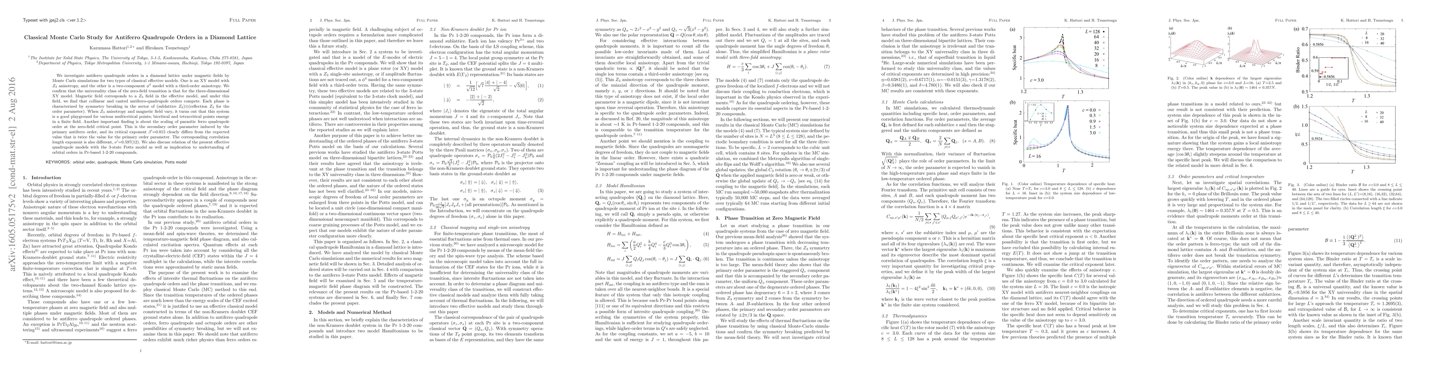 This paper uses Monte Carlo simulations to study antiferro quadrupole orders in a diamond lattice under magnetic fields, employing two classical effective models. The study reveals competition between collinear and canted antiferro-quadrupole orders and identifies various multicritical points, while noting a distinct scaling behavior for a secondary ferro quadrupole order.