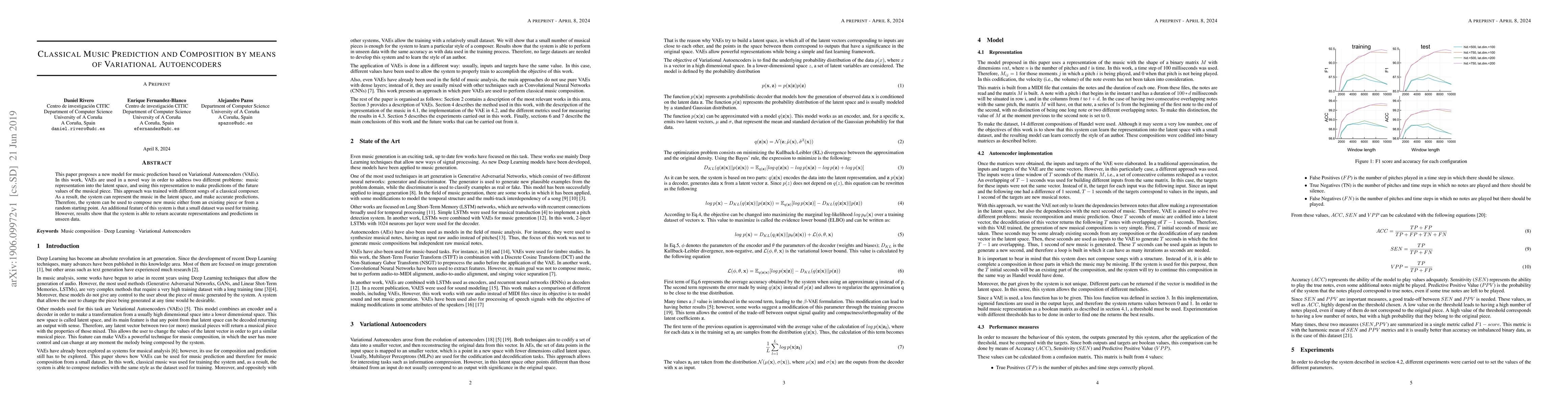 This paper introduces a Variational Autoencoder (VAE) model for classical music prediction and composition, demonstrating its ability to represent music in latent space and accurately predict future musical values, even with a small training dataset. The system can generate new music from existing compositions or random inputs.